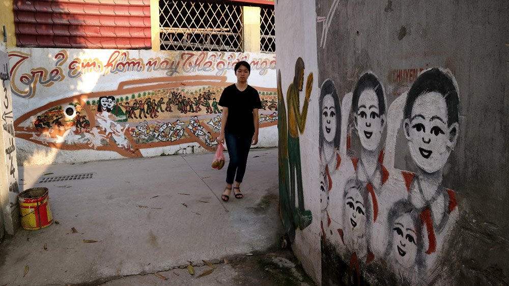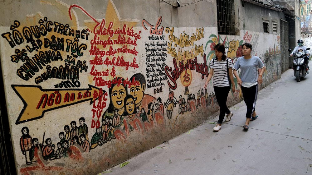 | Màu sắc rực rỡ của những bức họa, những dòng chữ khẩu hiệu khiến những bức tường vô tri trở nên sống động.