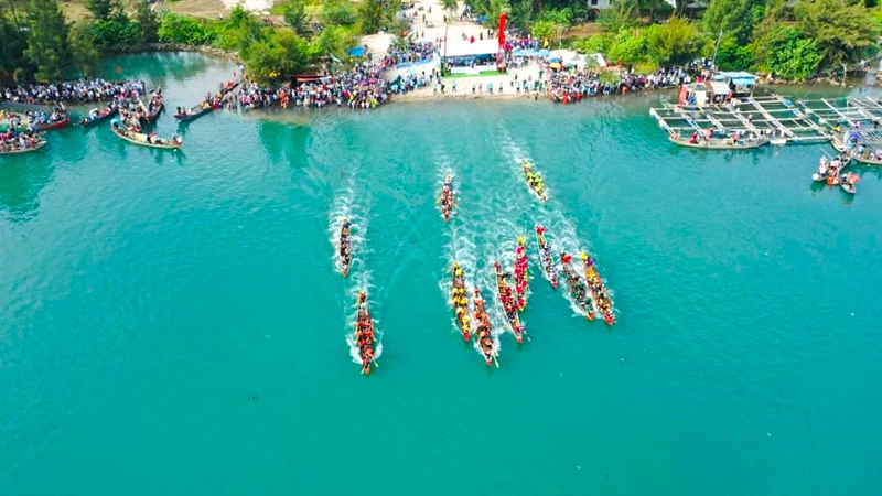 Hoạt động đua thuyền truyền thống trên đầm Lập An |