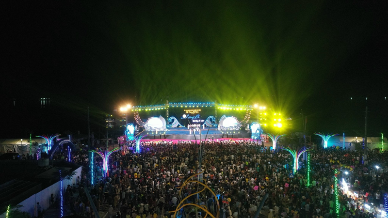 Chương trình nghệ thuật tối 11/5 tại thị trấn Lăng Cô thu hút đông đảo người dân và du khách tham dự |