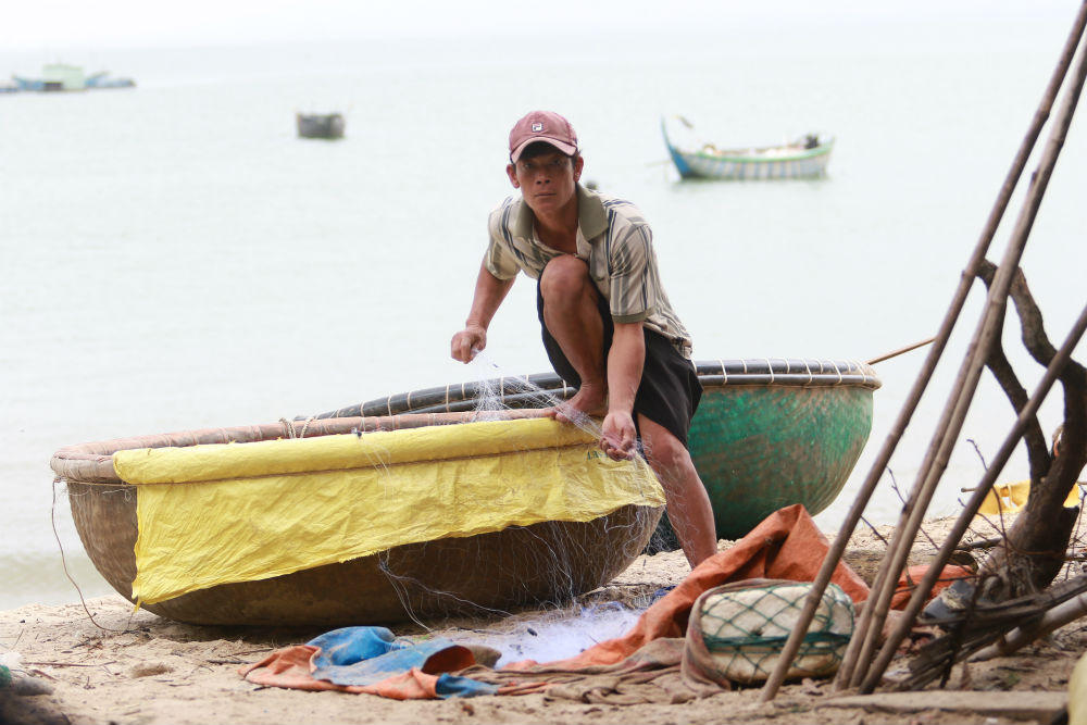 Nhắc đến chốn xưa, ông Nguyễn Văn Bốn (58 tuổi) rời đôi bàn tay mất ngón khỏi tấm lưới đang đan dở, hướng ánh mắt về vùng đất bên bờ biển 40 năm gắn bó.