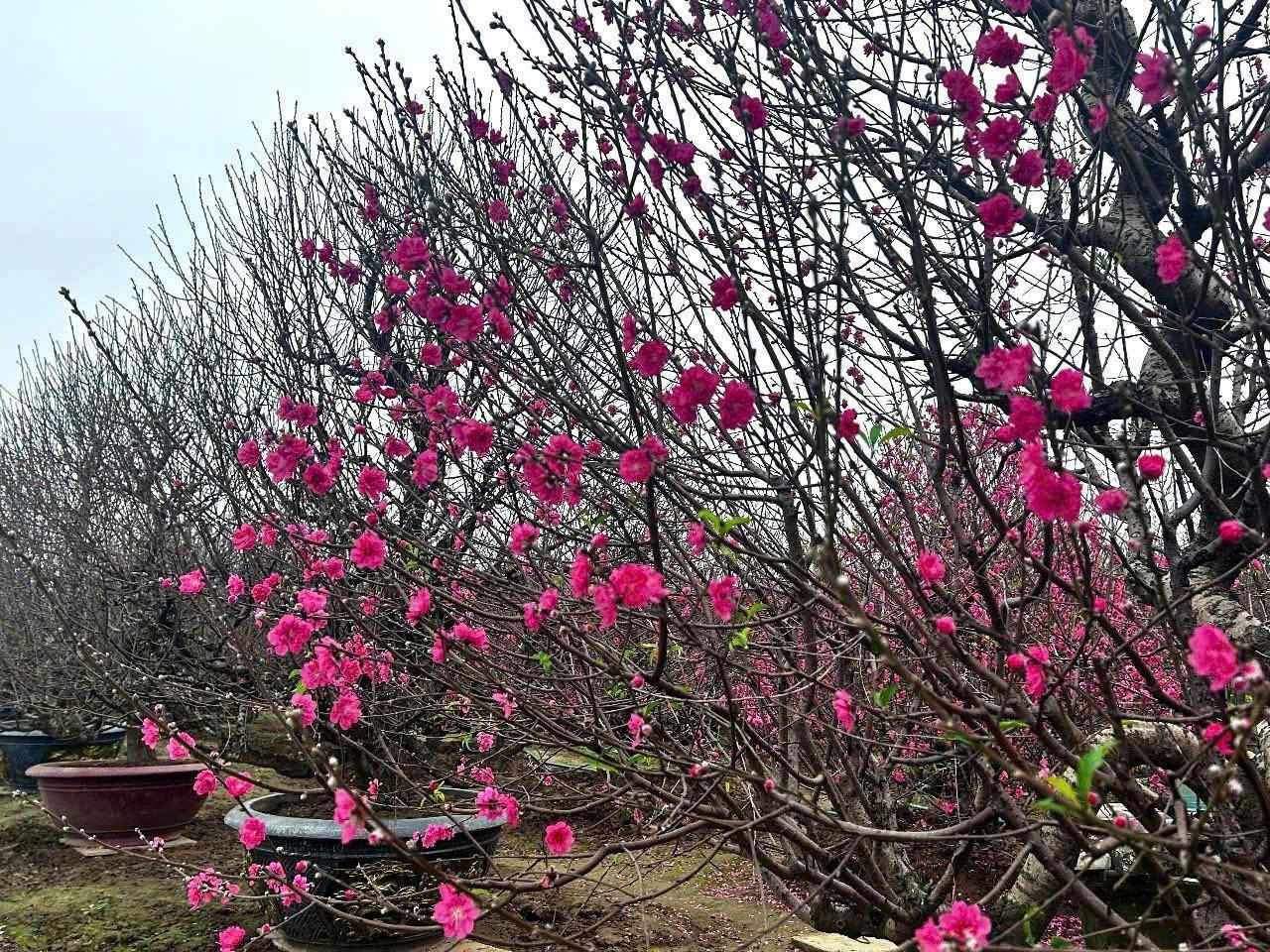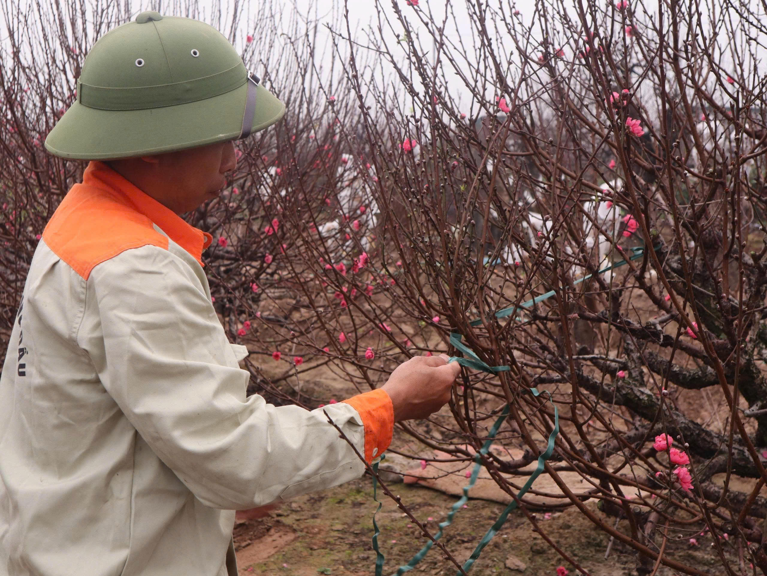 Năm nay, thời tiết có phần đặc biệt khi mùa đông ấm hơn so với trung bình nhiều năm. Điều này khiến một số diện tích đào nở sớm, buộc người trồng phải theo dõi sát sao từng ngày để điều chỉnh nước tưới, che phủ hoặc hãm nụ.