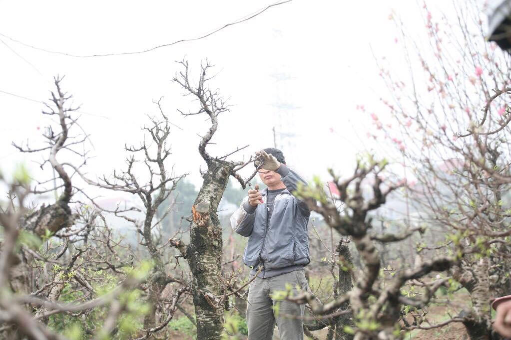 Theo ông Phong – chủ vườn đào Phong Anh cho biết: “Mùng 3, mùng 4 tết năm nay là cả gia đình tôi đã lo việc chăm sóc đào cho vụ mới. Riêng những gốc đào nào to và cổ, thì việc ghép mắt để có cành và hoa đẹp sẽ do chính tôi làm và chăm bón các gốc đào thì sẽ do nhân viên trong vườn đào làm”.