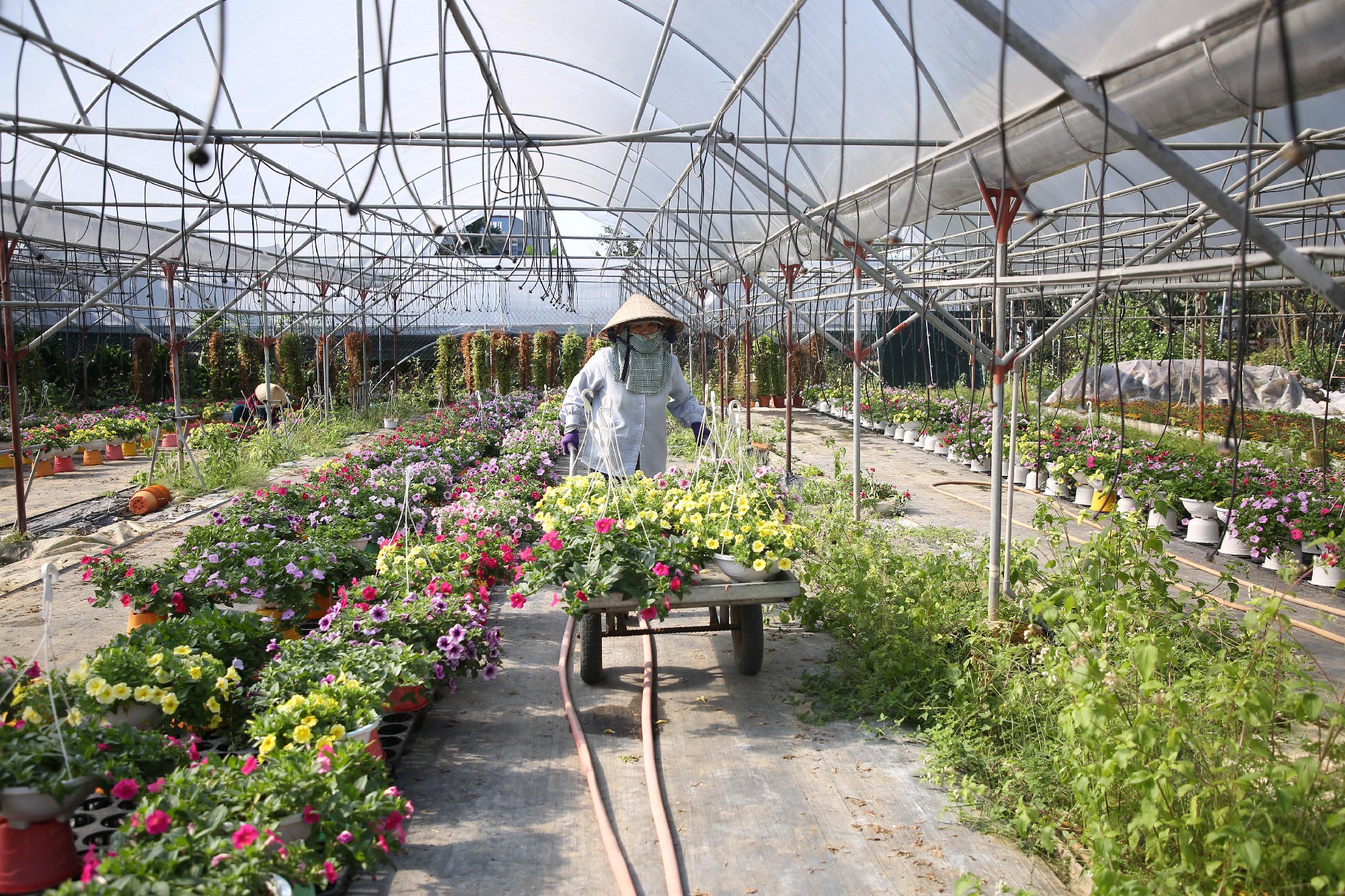 Những chậu hoa rực rỡ sắc màu theo các chuyến xe mang Tết từ làng về phố thị...