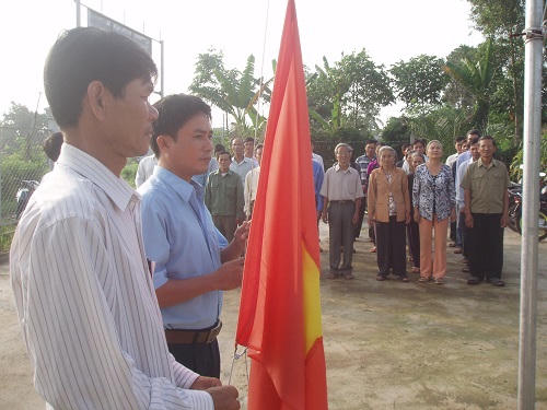 Cọc cạch chiếc xe đạp trên con đường Thủy Sản vừa được bê tông hóa, nhìn vào nhà ông Ba thì thấy cổng khóa, bà Yến (68 tuổi) phanh gấp bằng cách nhảy cò cò với chiếc xe đạp. Vào sân văn phòng ấp thì đã thấy mọi người có mặt đông đủ, xe cộ để kín một góc sân. Mọi người tự giác xếp hàng để Bí thư Chi bộ ấp Bùi Huy Sinh chuẩn bị điều khiển buổi chào cờ.