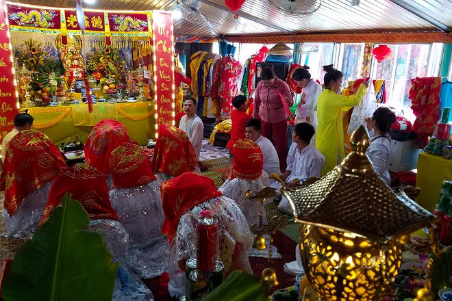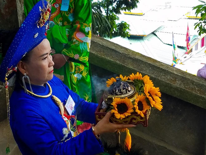 Khách dự hội theo đám rước trong hương khói tỏa bay, đèn hoa tỏa chiếu. Lòng tin tưởng hướng vọng vào sự linh thiêng của tam vị Thánh mẫu, đức Thiên y Ana. Một không khí tôn giáo tín ngưỡng thiêng liêng ngập tràn cầu điều tốt lành, thuận lợi, bình an…