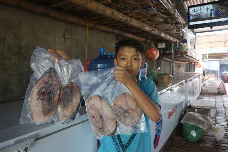 Ngồi gói những con cá khoai khô, tép khô vào túi bóng, chị Nguyễn Thị Nghi, chủ một cơ sở chế biến hải sản khô, cho biết chị đang chuẩn bị đơn hàng để gửi cho khách ở Hà Nội. Cơ sở của chị giữ được mối khách này từ nhiều năm nay chỉ sau một lần vị khách này tình cờ ghé mua hàng. Nhận thấy hải sản khô thơm ngon, giá cả phải chăng nên sau chuyến du lịch, vị khách này thường xuyên đặt hàng qua điện thoại.