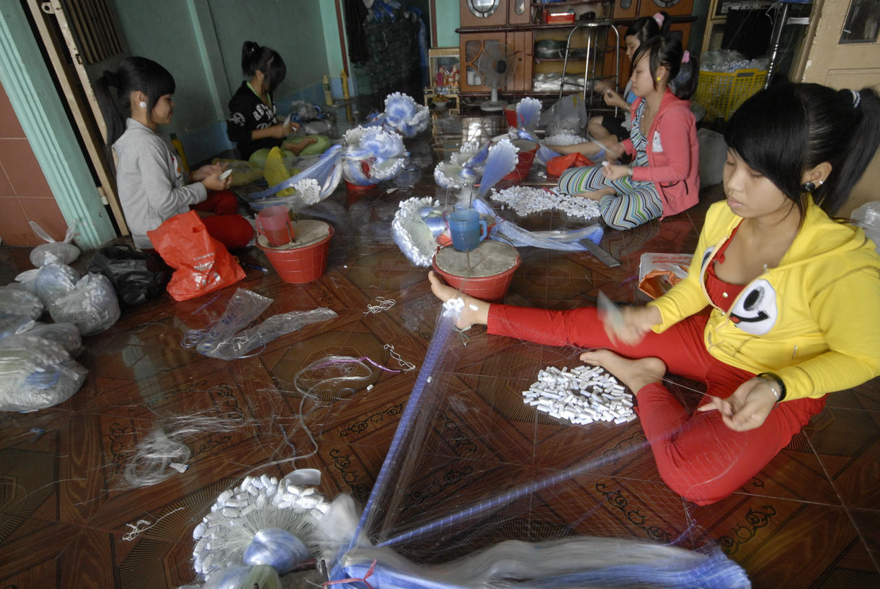 Các cơ sở đthuê mướn nhân công để phụ giúp. Hiện nay cơ sở sản xuất Hữu Tý cho ông Lê Hữu Qúy làm chủ có hơn 30 người thợ làm việc từ sáng sớm đến chiều tối. Và thu nhập của họ cũng khá cao, dao động 200.000 – 250.000 đồng/ ngày, tăng ca có khi được 300.000 – 400.000 đồng/ ngày.