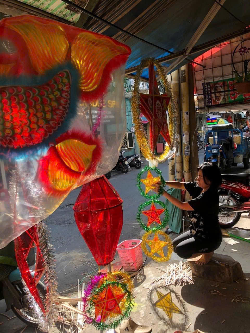 Cứ mỗi mùa Trung thu đến, làng nghề làm lồng đèn Phú Bình (quận 11, TP Hồ Chí Minh) lại đông vui tấp nập hơn hẳn ngày thường. Cả con phố rực lên bởi những chiếc lồng đèn treo đủ màu sắc. Những nghệ nhân thoăn thoắt làm lồng đèn để kịp cho Trung thu đến.