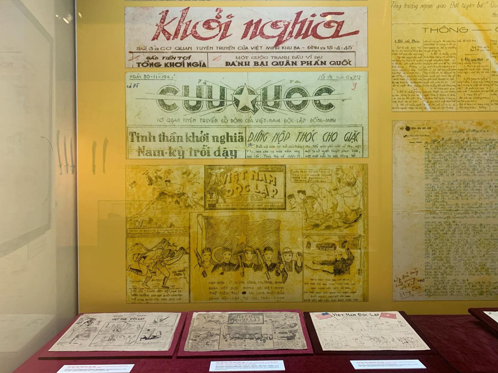 Các họa bản báo về tranh cổ động trong thời kỳ kháng chiến chống Pháp được trưng bày tại Bảo tàng Lịch sử quốc gia. |