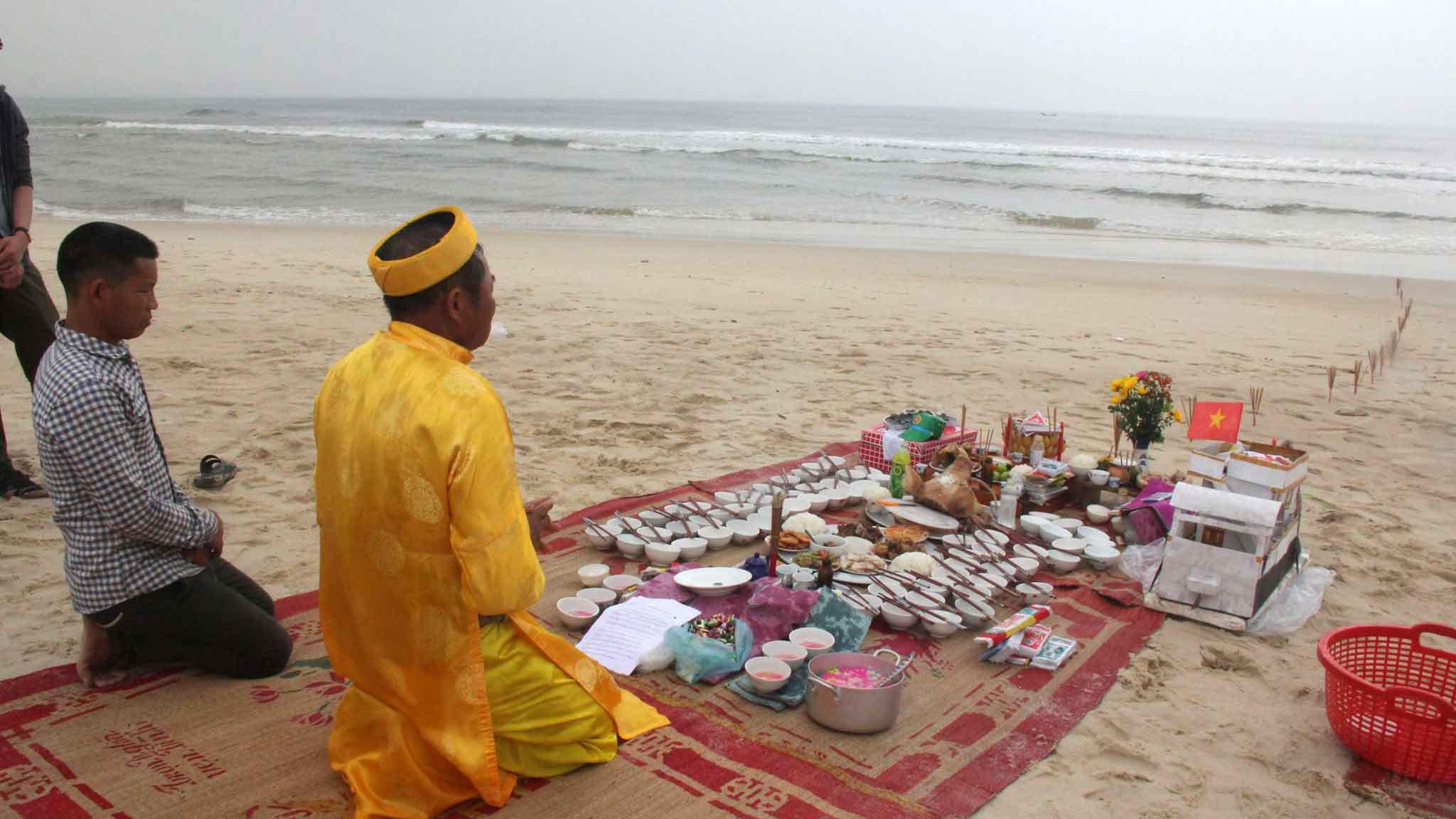 Ngoài mâm cúng trong nhà, chúng tôi cũng chuẩn bị một mâm cúng ở bờ biển, mâm cúng sẽ có 64 cái bát, 64 đôi đũa, quần áo, tiền vàng… để cúng cho anh và đồng đội”.