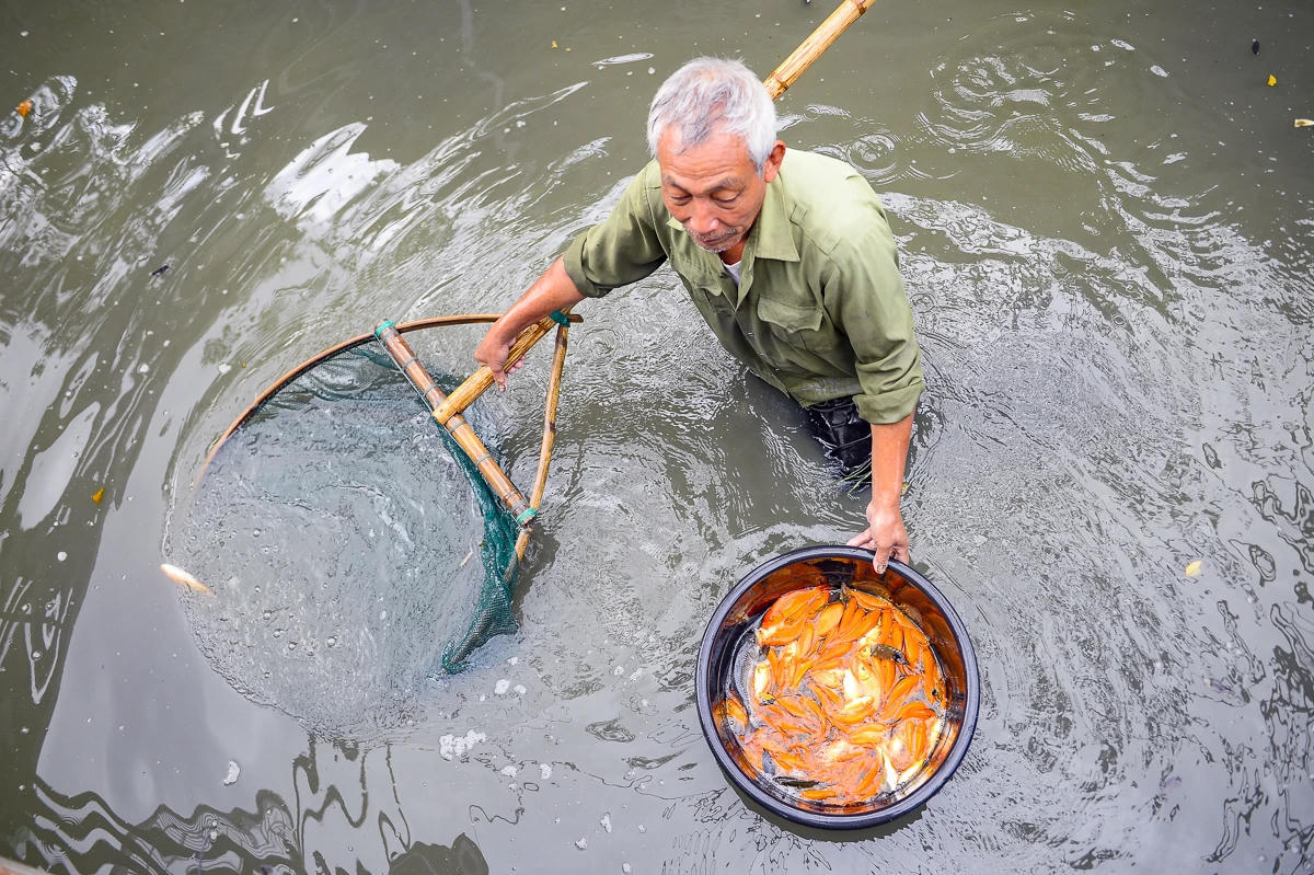 Theo ghi nhận, tại làng Tân Cổ, xã Lưu Vệ (Thanh Hóa), từ những ngày giữa tháng chạp đến nay, mỗi sáng sớm, nhiều ao nuôi đã được tháo nước để thu hoạch cá. Người dân chia nhau kéo lưới, phân loại, đóng cá ngay tại bờ ao nhằm kịp giao cho thương lái, phục vụ thị trường cúng ông Công, ông Táo. Không khí thu hoạch diễn ra khẩn trương, liên tục trong nhiều ngày liền.