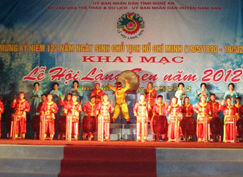 Lễ hội Làng Sen năm 2012 khai mạc tối qua tại xã Kim Liên (huyện Nam Đàn, Nghệ An),i do Sở VHTT&DL tỉnh Nghệ An và UBND huyện Nam Đàn phối hợp tổ chức. Đây là dịp để người dân Việt Nam và các kiều bào hướng mừng 122 năm ngày sinh Chủ tịch Hồ Chí Minh (19/5/1890 – 19/5/2012) và báo công với Bác.