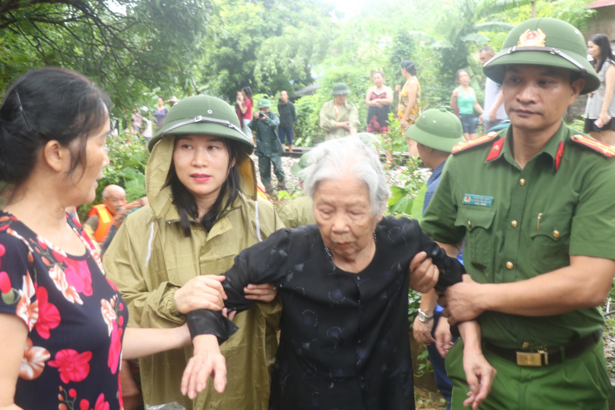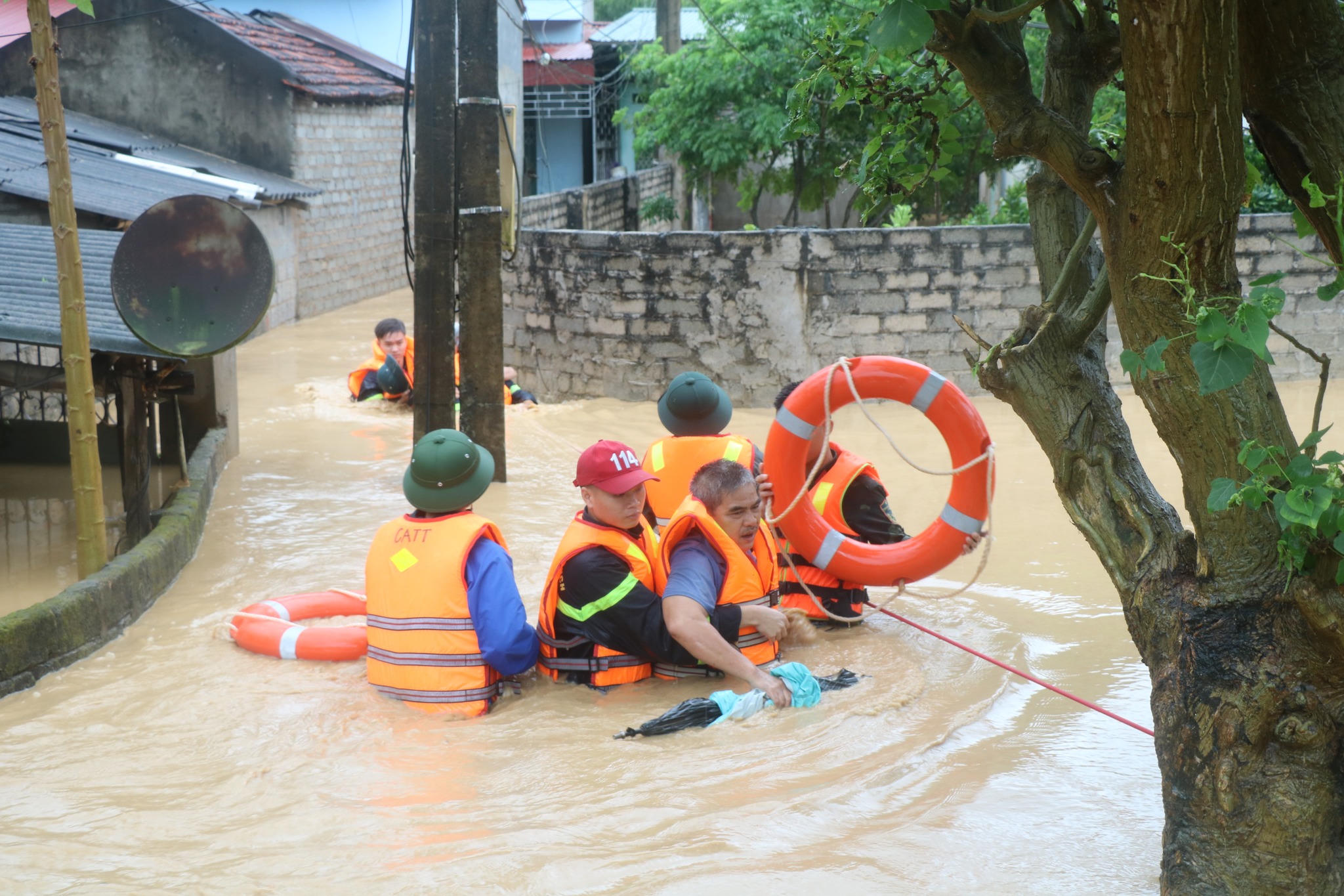Lực lượng quân đội hỗ trợ người dân sơ tán, di dời tránh lũ. |