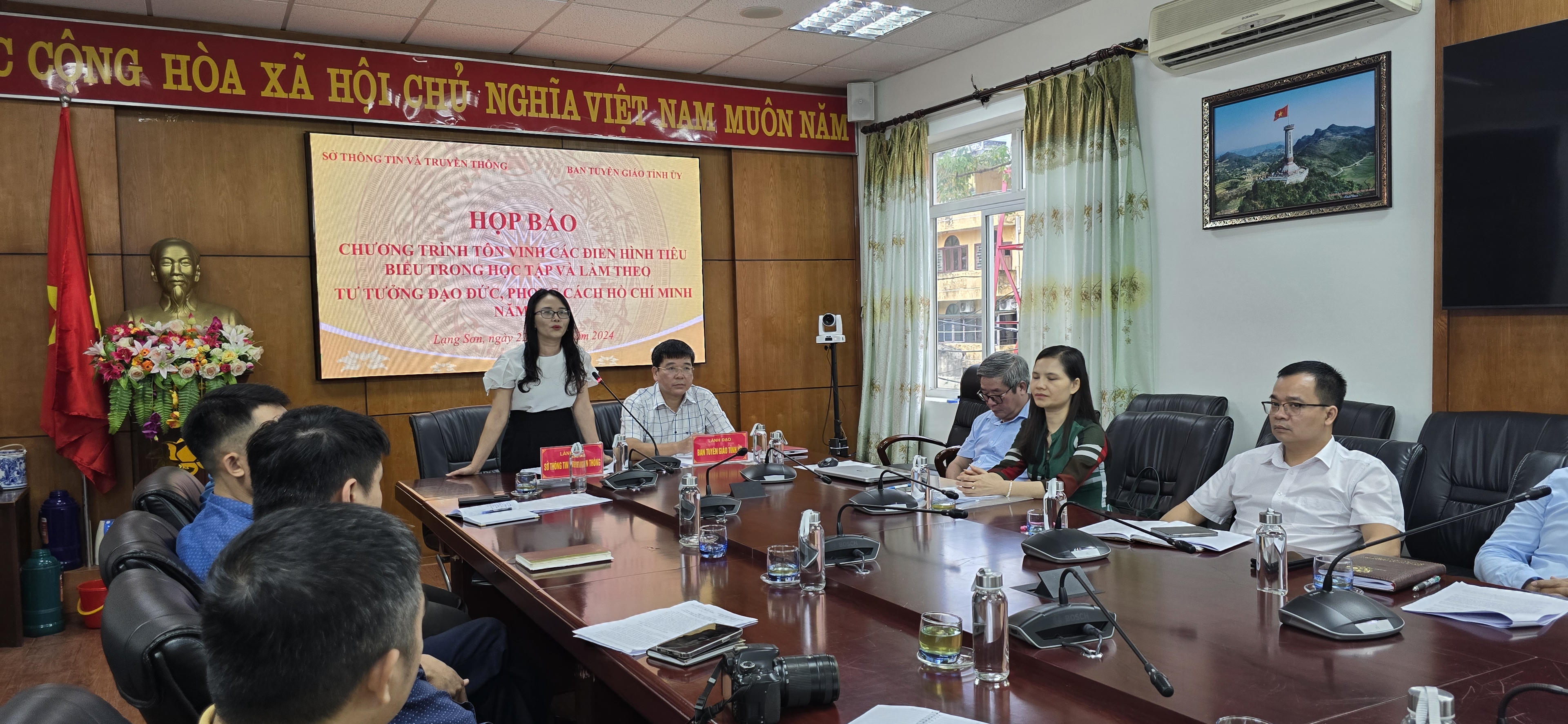(PLVN) -Chiều 2 2/8, Sở Thông tin và Truyền thông và Ban Tuyên giáo Tỉnh ủy tỉnh Lạng Sơn phối hợp tổ chức họp báo về Chương trình Tôn vinh các điển hình tiêu biểu trong học tập và làm theo tư tưởng, đạo đức, phong cách Hồ Chí Minh năm 2024.