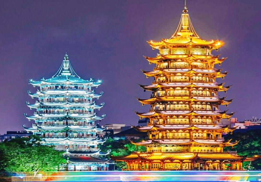 Nhật Nguyệt Song Tháp - một trong những địa điểm du lịch hấp dẫn của Quảng Tây, Trung Quốc. |