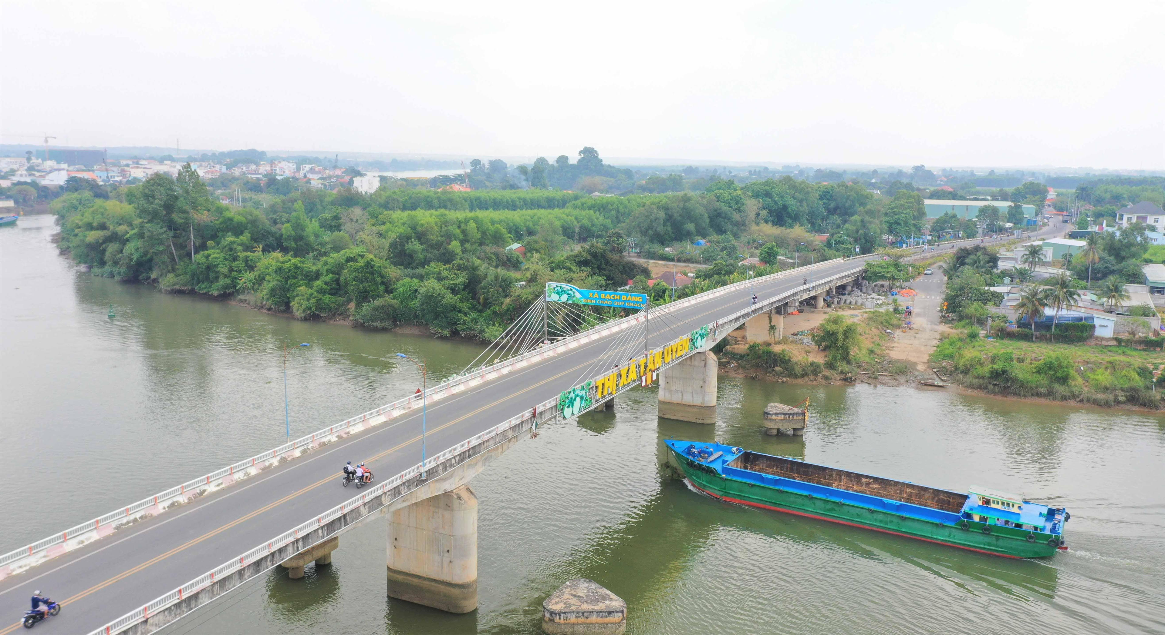 Cầu bắc qua sông Đồng Nai, nối liền cù lao Bạch Đằng với thị xã Tân Uyên, Cầu bắc qua sông Đồng Nai, nối liền cù lao Bạch Đằng với thị xã Tân Uyên. |