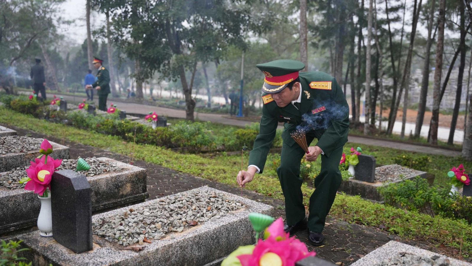 Cùng sáng 2/2, đoàn đại biểu lãnh đạo tỉnh Thừa Thiên Huế tổ chức dâng hương, tri ân các anh hùng liệt sĩ tại Nghĩa trang liệt sĩ thành phố Huế, tỉnh Thừa Thiên Huế. Tại buổi dâng hương, các lãnh đạo tỉnh đã thỉnh chuông tại tháp chuông hoà bình, cầu mong quê hương bình an, năm mới thắng lợi mới.