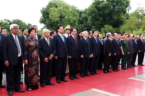 Tổng Bí thư Nguyễn Phú Trọng, nguyên Tổng Bí thư Nông Đức Mạnh; Chủ tịch nước Trương Tấn Sang, nguyên Chủ tịch nước Trần Đức Lương; Thủ tướng Nguyễn Tấn Dũng; Chủ tịch Quốc hội Nguyễn Sinh Hùng, nguyên Chủ tịch Quốc hội Nguyễn Văn An; các đồng chí Ủy viên Bộ Chính trị, Bí thư Trung ương Đảng, các đồng chí nguyên Ủy viên Bộ Chính trị, nguyên Bí thư Trung ương Đảng… đã tới đặt vòng hoa, dâng hương, tưởng niệm các anh hùng liệt sĩ tại Đài Tưởng niệm các Anh hùng liệt sĩ trên đường Bắc Sơn.