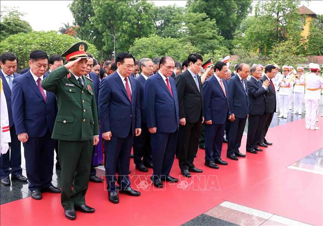 Đoàn đại biểu Lãnh đạo, nguyên Lãnh đạo Đảng, Nhà nước tới đặt vòng hoa tưởng niệm các Anh hùng Liệt sỹ. |