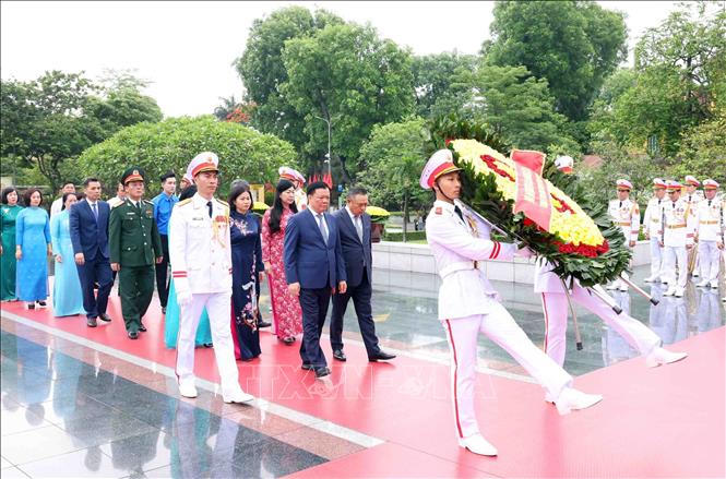 Đoàn đại biểu Thành uỷ, HĐND, UBND, MTTQ Việt Nam thành phố Hà Nội tới đặt vòng hoa tưởng niệm các Anh hùng Liệt sỹ. |