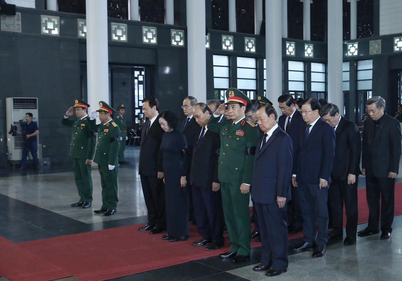 Đoàn Quốc hội do Ủy viên Bộ Chính trị, Chủ tịch Quốc hội Vương Đình Huệ làm trưởng đoàn vào viếng.