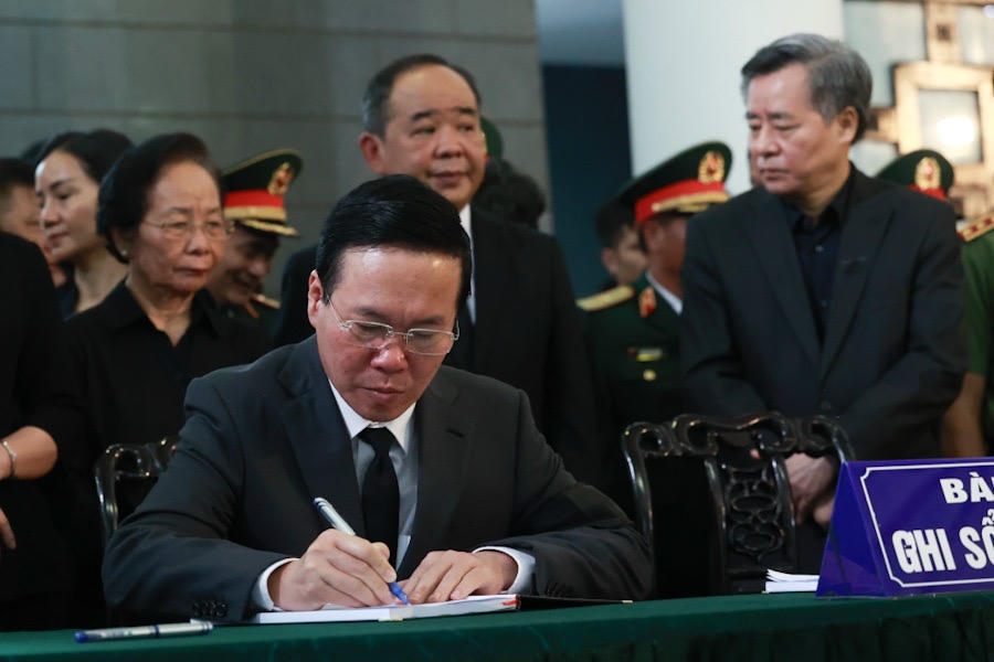 Sau khi thực hiện nghi thức viếng, đại biểu các đoàn đã ghi sổ tang tưởng nhớ, bày tỏ niềm tiếc thương vô hạn trước sự ra đi của đồng chí Thượng tướng Nguyễn Chí Vịnh.