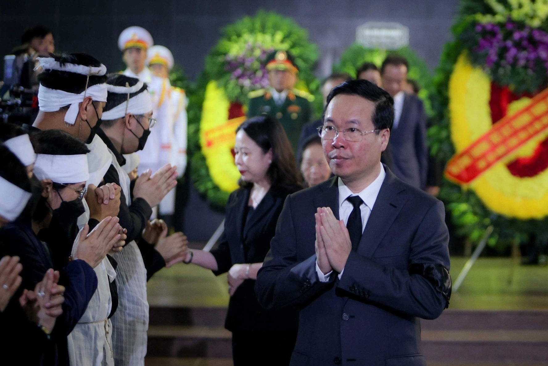 Đoàn Chủ tịch nước do Chủ tịch nước Võ Văn Thưởng dẫn đầu vào viếng đồng chí Thượng tướng Nguyễn Chí Vịnh. Ảnh VGP. |