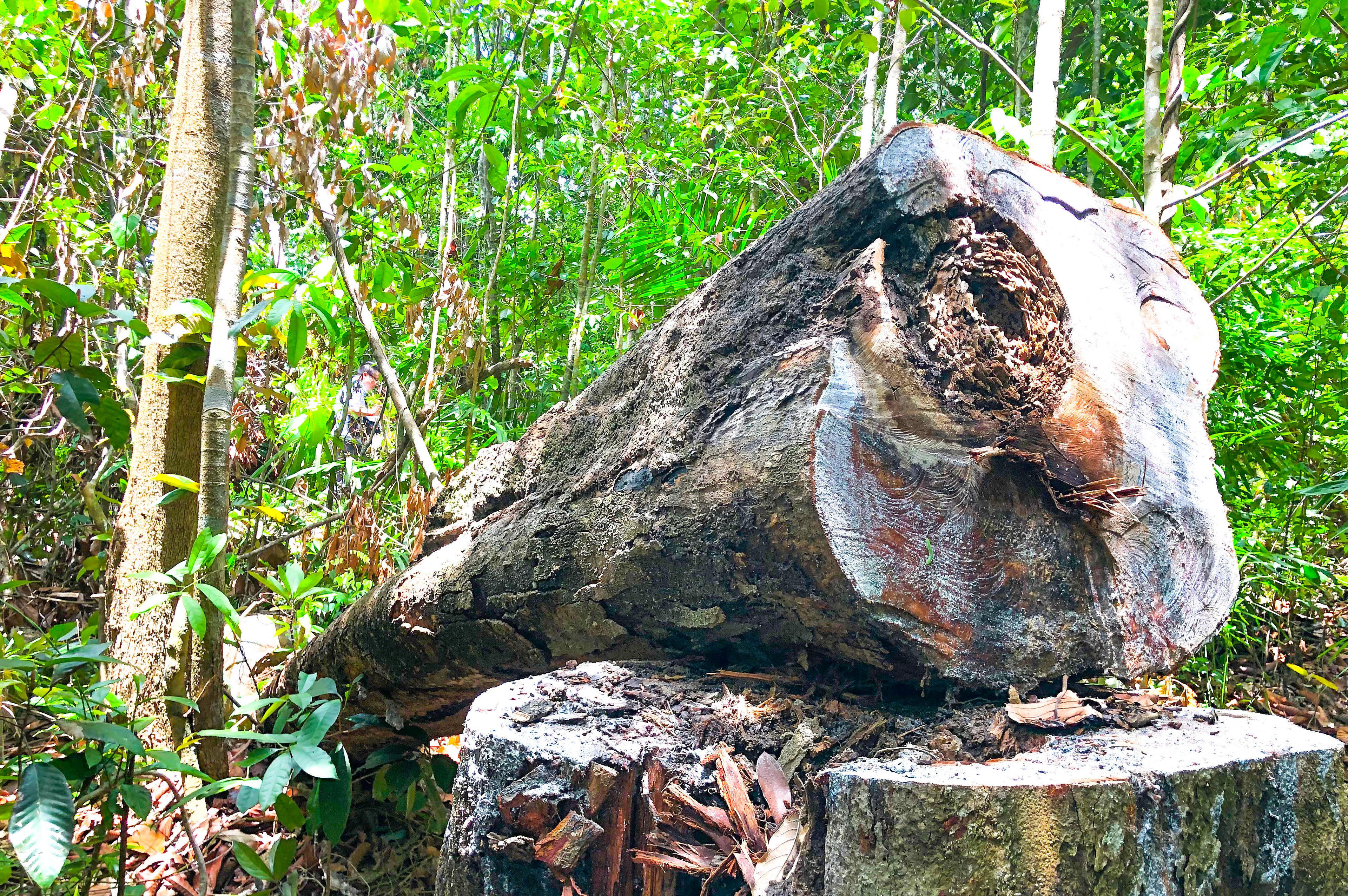 Theo đó, tổng số cây rừng bị cưa hạ là 42 cây. Trong đó, số lượng cây rừng có đường kính gốc chặt từ 15 - 35 cm là 31 cây, số lượng cây rừng có đường kính gốc chặt bình quân 72,5 cm là 2 cây… Tổng khối lượng gỗ tròn bị thiệt hại ước tính hơn 14,7 mét khối. Gỗ đã được cắt khúc theo quy cách 0,20 x 1,55 mét có khối lượng hơn 2 mét khối/42 lóng, phẩm chất gỗ trung bình. Gỗ Dầu rái đã được cắt khúc còn nằm bên gốc tại hiện trường có khối lượng hơn 5,8 mét khối/4 khúc, phẩm chất gỗ xấu, gỗ bị rỗng ruột chiếm tới 80%. Khối lượng gỗ tròn đã vận chuyển ra khỏi hiện trường khoảng 6,8534 mét khối.