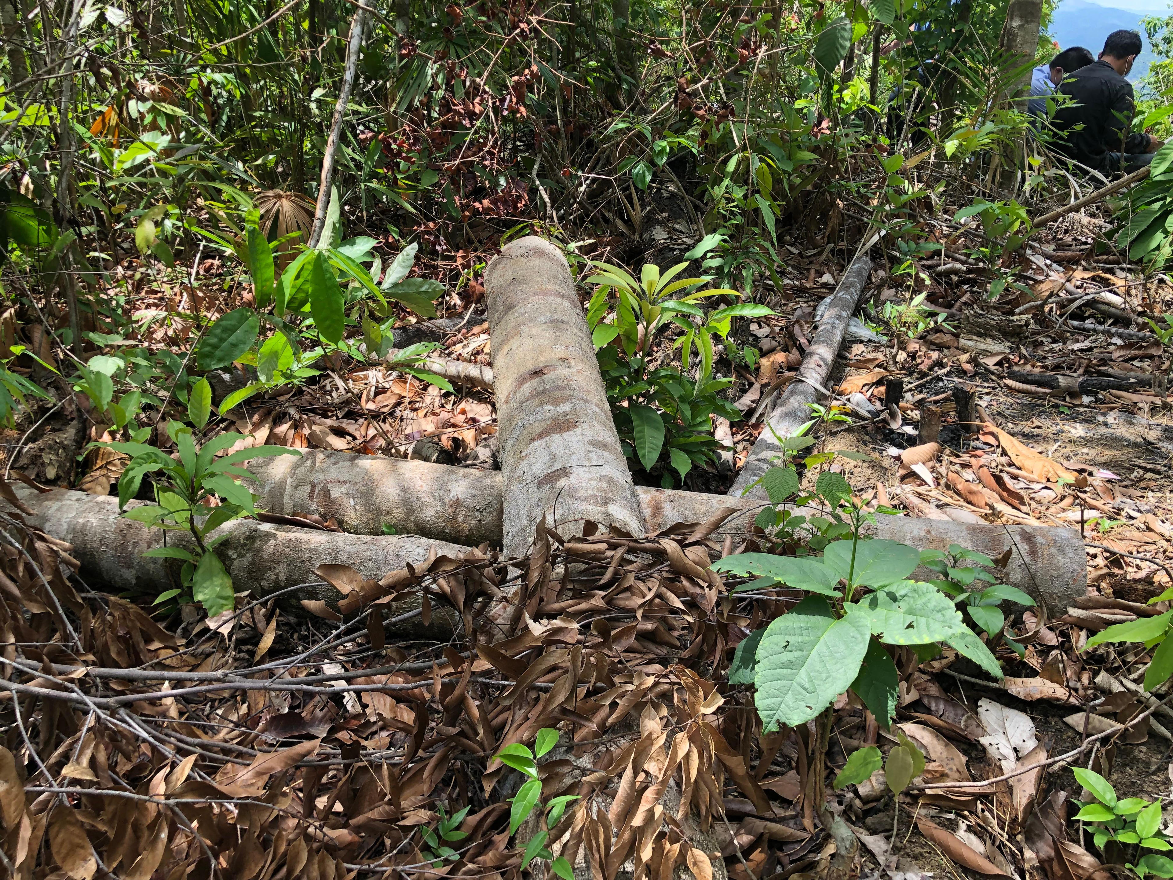 Nhiều khúc gỗ còn nằm ngổn ngang trong rừng phòng hộ Phổ Phong, thị xã Đức Phổ, tỉnh Quảng Ngãi. |
