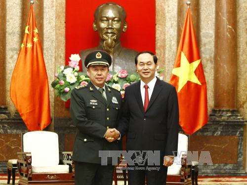 | Chủ tịch nước Trần Đại Quang và Thượng tướng Phạm Trường Long, Ủy viên Bộ Chính trị, Phó Chủ tịch Quân ủy Trung ương Trung Quốc. Ảnh: TTXVN. |
