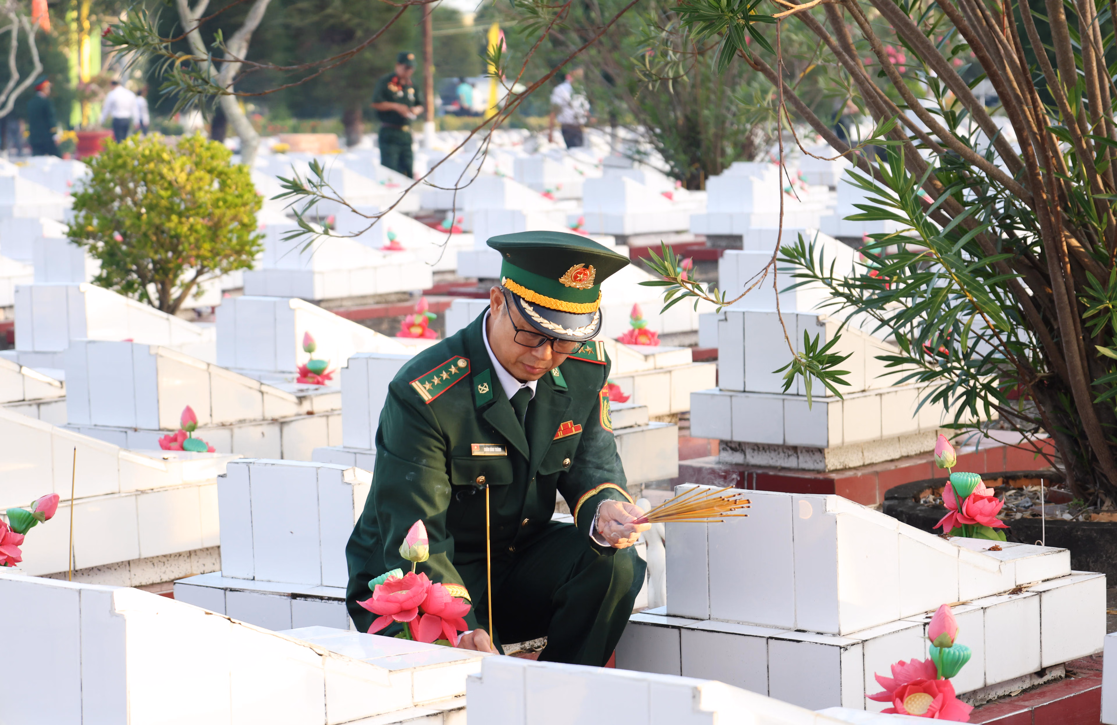 Sau nghi thức tưởng niệm, các đại biểu thắp hương tại các phần mộ, bày tỏ lòng biết ơn sâu sắc trước sự hy sinh cao cả của các thế hệ đi trước, những người đã ngã xuống để đất nước có được độc lập, hòa bình và phát triển như hôm nay.