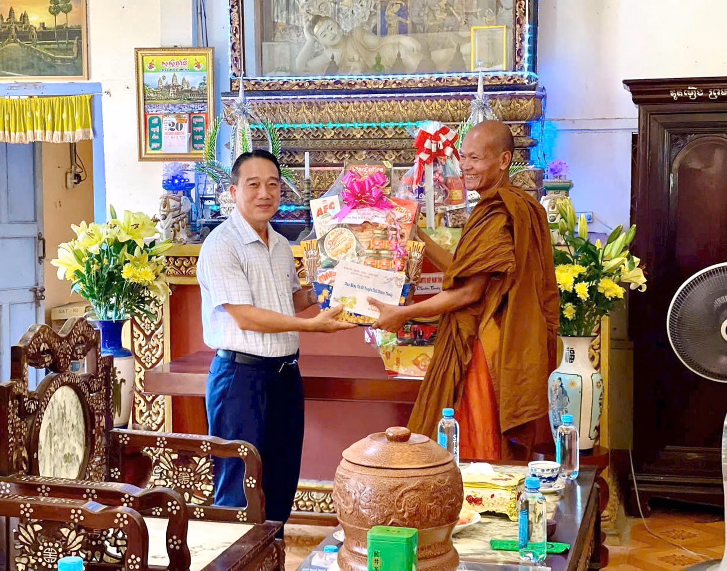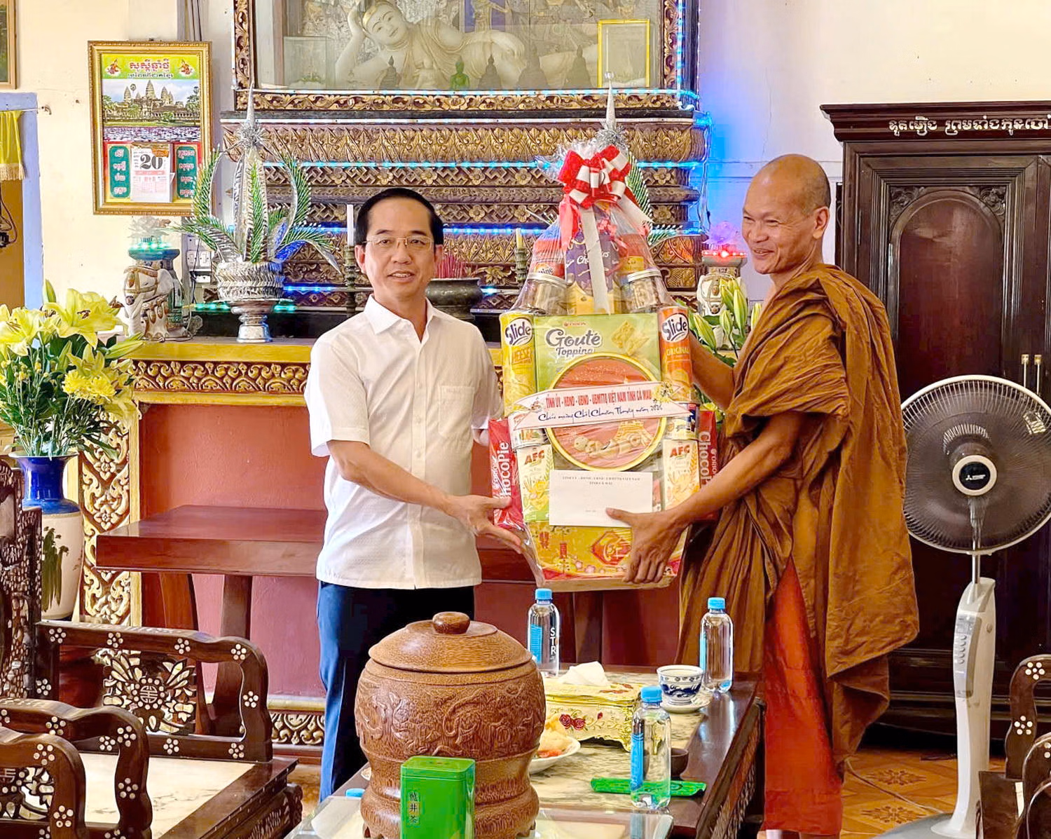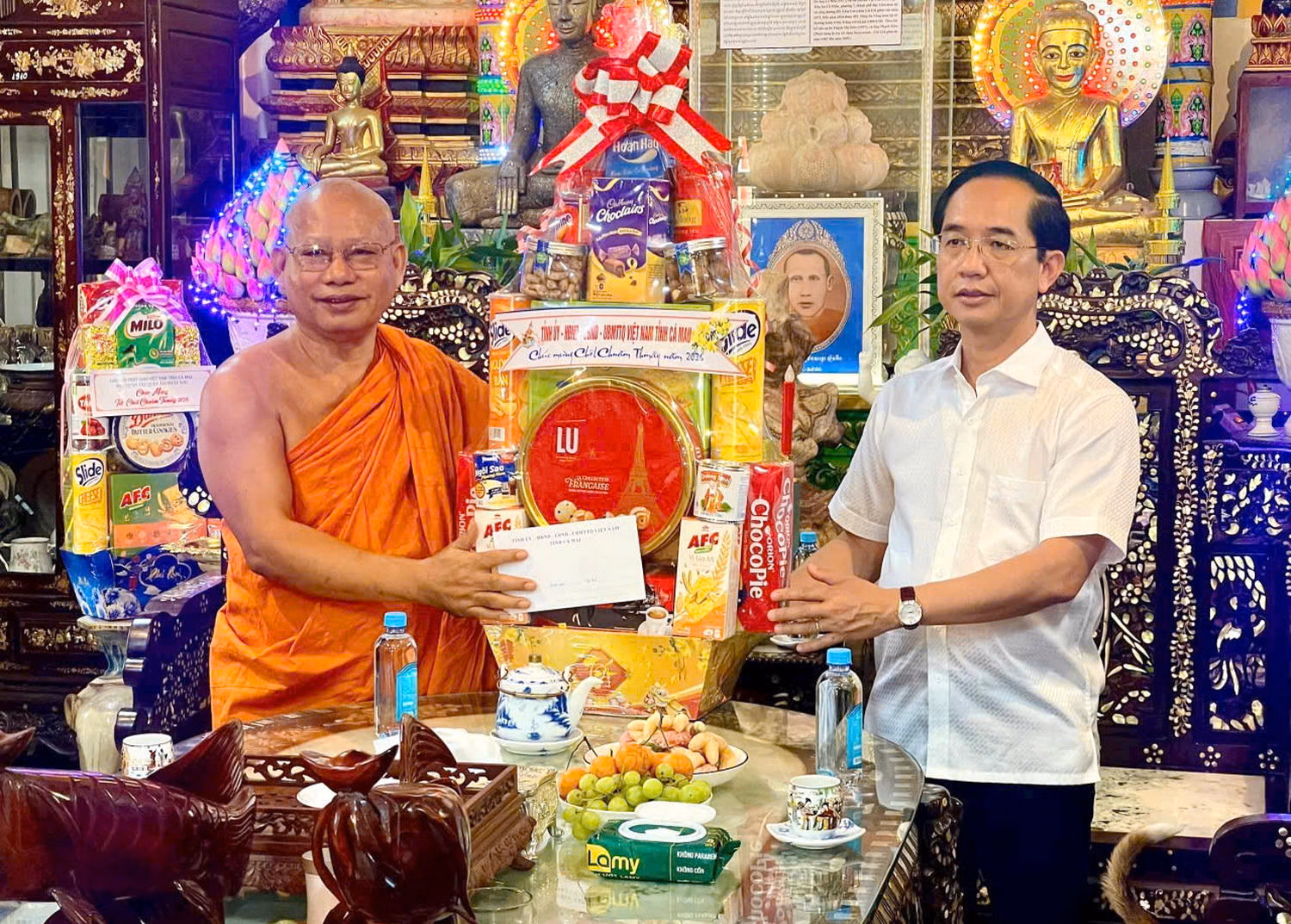 Dịp này, thay mặt Tỉnh ủy, HĐND, UBND, Ủy ban MTTQ Việt Nam tỉnh, ông Hồ Thanh Thủy đã trao tặng nhiều phần quà ý nghĩa cho chư tăng và Ban quản trị các chùa.