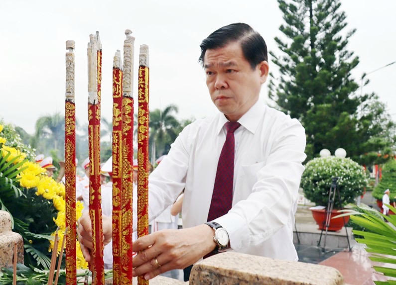 Sau lễ viếng, các đại biểu dâng hương tại Đền thờ Chủ tịch Hồ Chí Minh, anh linh các anh hùng liệt sĩ, Đài tưởng niệm liệt sĩ, 2 mộ tập thể và mộ hơn 4 ngàn liệt sĩ đang yên nghỉ tại Nghĩa trang liệt sĩ tỉnh.