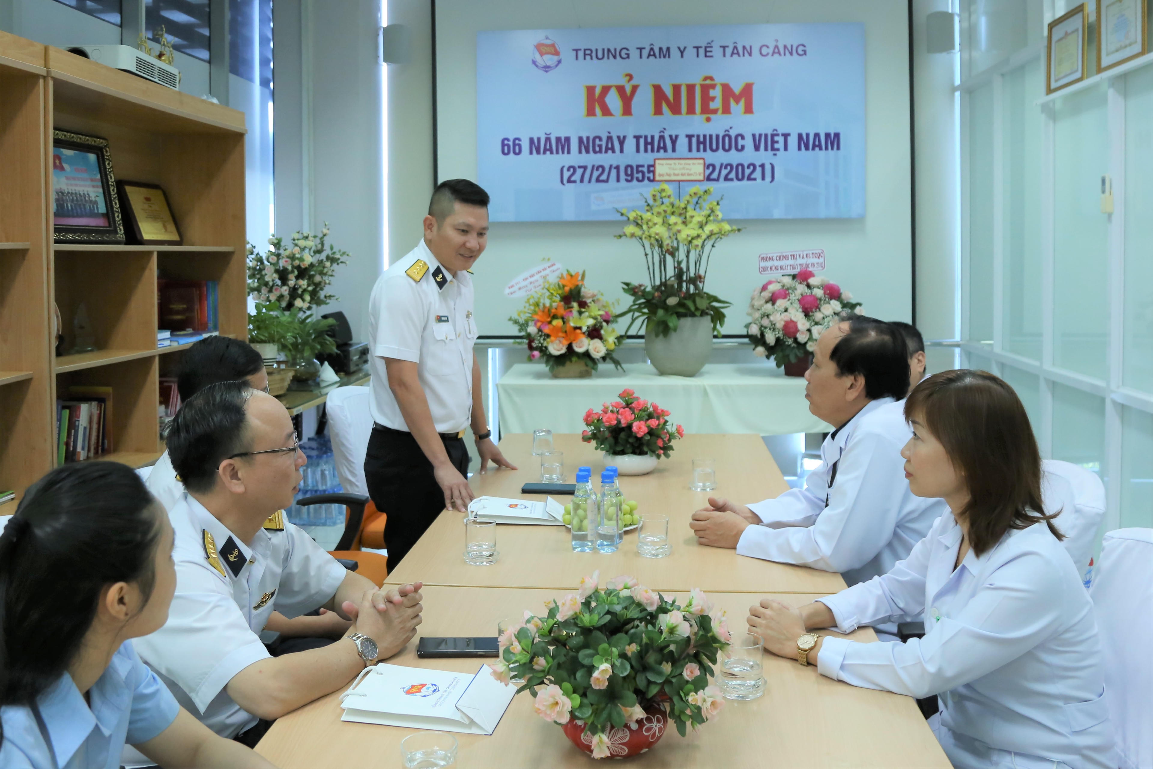 Nhân dịp ngày thầy thuốc Việt Nam, Thượng tá Võ Hoài Nam, Phó Tổng Giám đốc đã chúc mừng, tặng quà cho đội ngũ cán bộ, các y, bác sỹ và nhân viên của Trung tâm Y tế Tân Cảng. Đồng thời mong rằng trong thời gian tới cán bộ và đội ngũ y, bác sỹ, nhân viên Trung tâm Y tế Tân Cảng phát huy những kết quả trong công tác chăm sóc sức khỏe của cán bộ, nhân viên, người lao động trong Tổng công ty; tiếp tục giữ vững y đức, nâng cao y thuật để hoàn thành sứ mệnh chăm sóc sức khỏe của bộ đội và nhân dân; xứng đáng với lời dạy của Bác Hồ “thầy thuốc như mẹ hiền, lương y như từ mẫu”; xứng đáng với truyền thống tốt đẹp của ngành, với sự trân trọng và tin yêu của mọi người; kịp thời dự báo sớm và tham mưu cho lãnh đạo Tổng công ty trong việc khám, chữa bệnh và nâng cao sức khỏe của cán bộ, nhân viên trong toàn hệ thống.