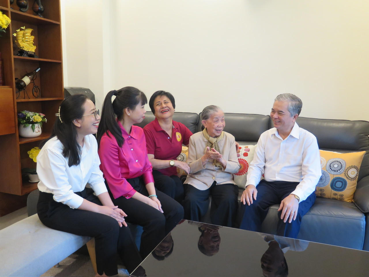 Đoàn công tác cũng đến thăm, tặng quà và chúc Tết bà mẹ Việt Nam anh hùng Dương Kim Lan (sinh năm 1932). Phó Chủ tịch UBND TP.HCM Ngô Minh Châu đã ân cần thăm hỏi sức khỏe của mẹ, đồng thời bày tỏ sự trân trọng trước những đóng góp, hy sinh lớn lao của các Mẹ cho sự nghiệp đấu tranh giành độc lập, giải phóng dân tộc.