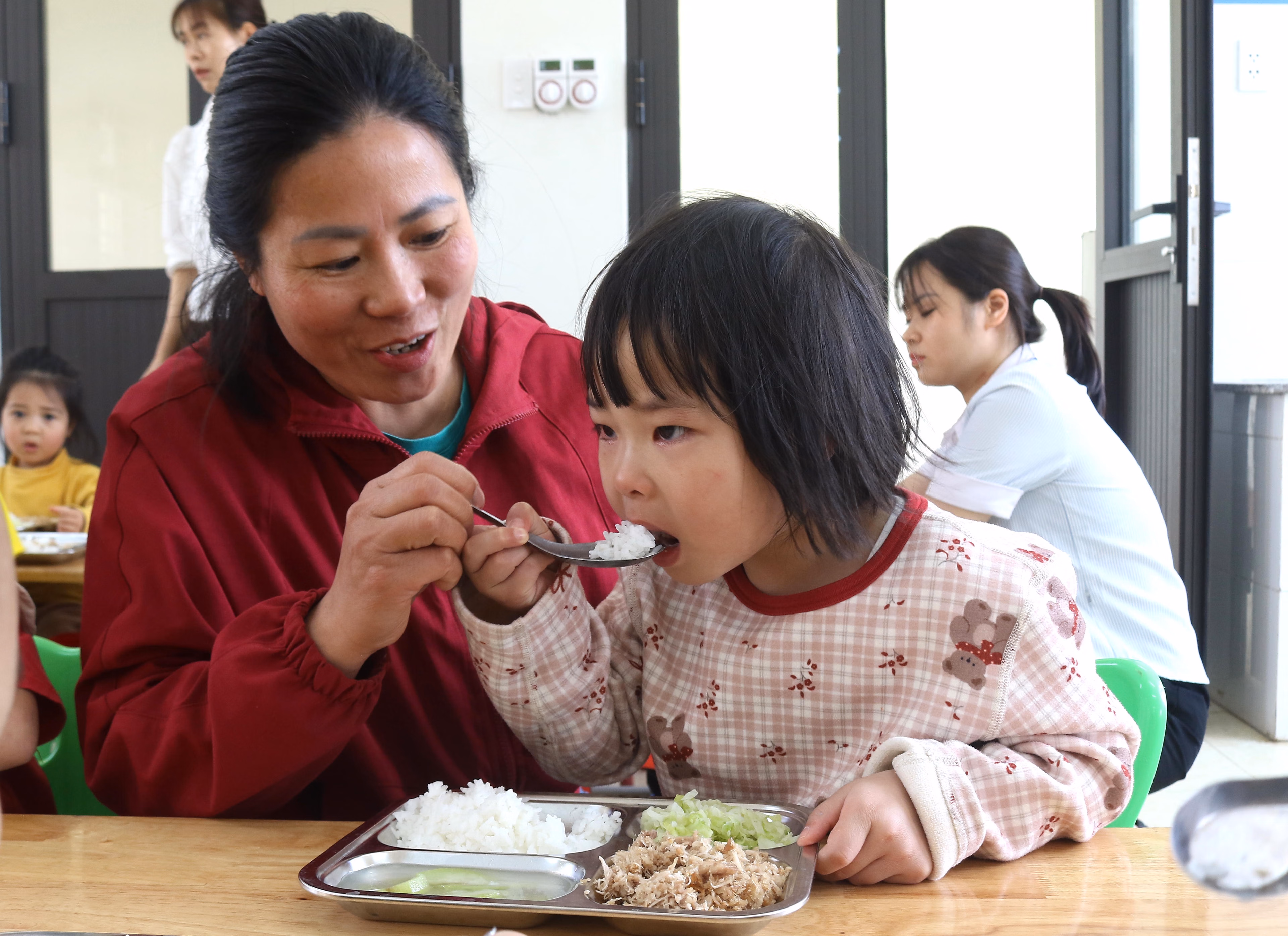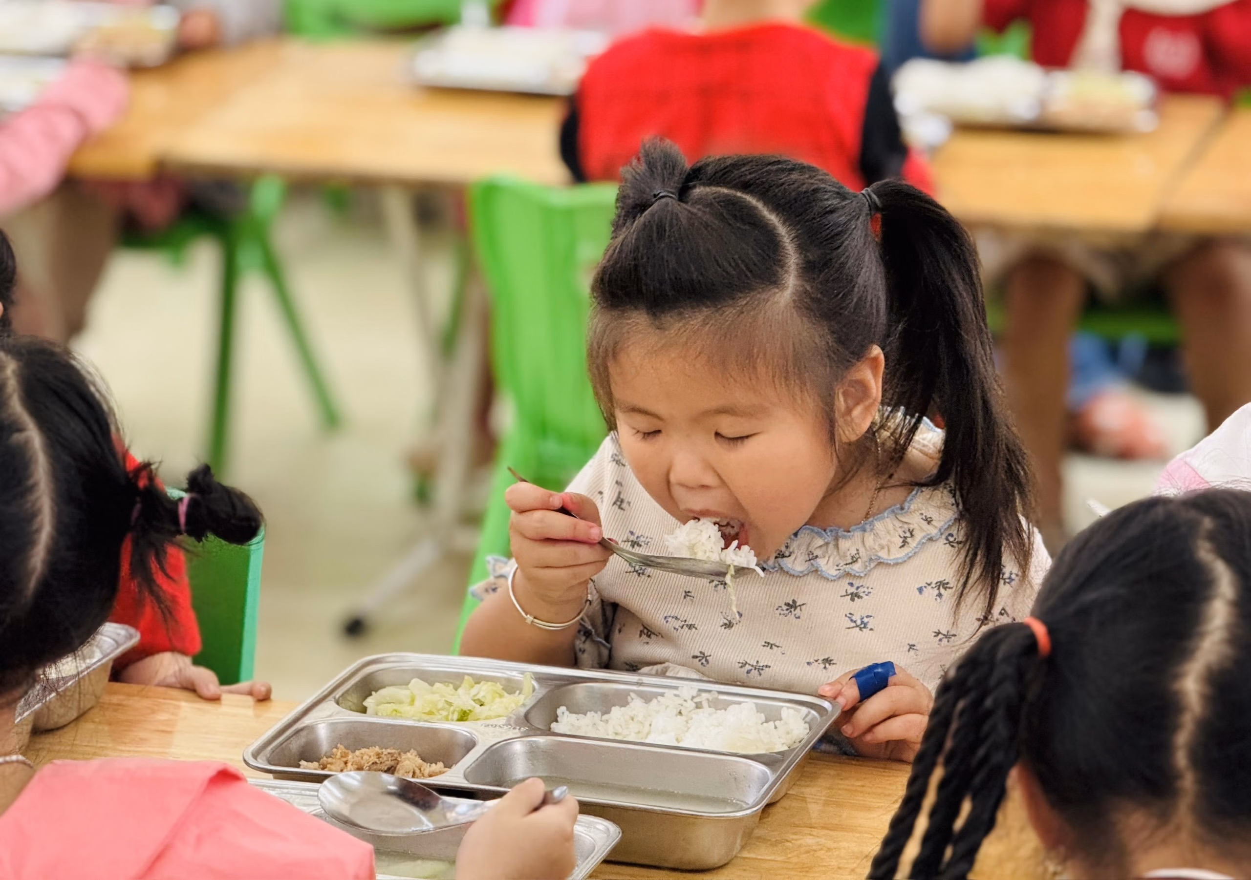 Nhờ vậy, khẩu phần ăn của trẻ được duy trì ổn định và nâng lên cả về lượng lẫn chất, với sự bổ sung đa dạng các thực phẩm giàu dinh dưỡng như thịt, cá, trứng, sữa, rau xanh và trái cây tươi, góp phần giúp trẻ phát triển toàn diện.
