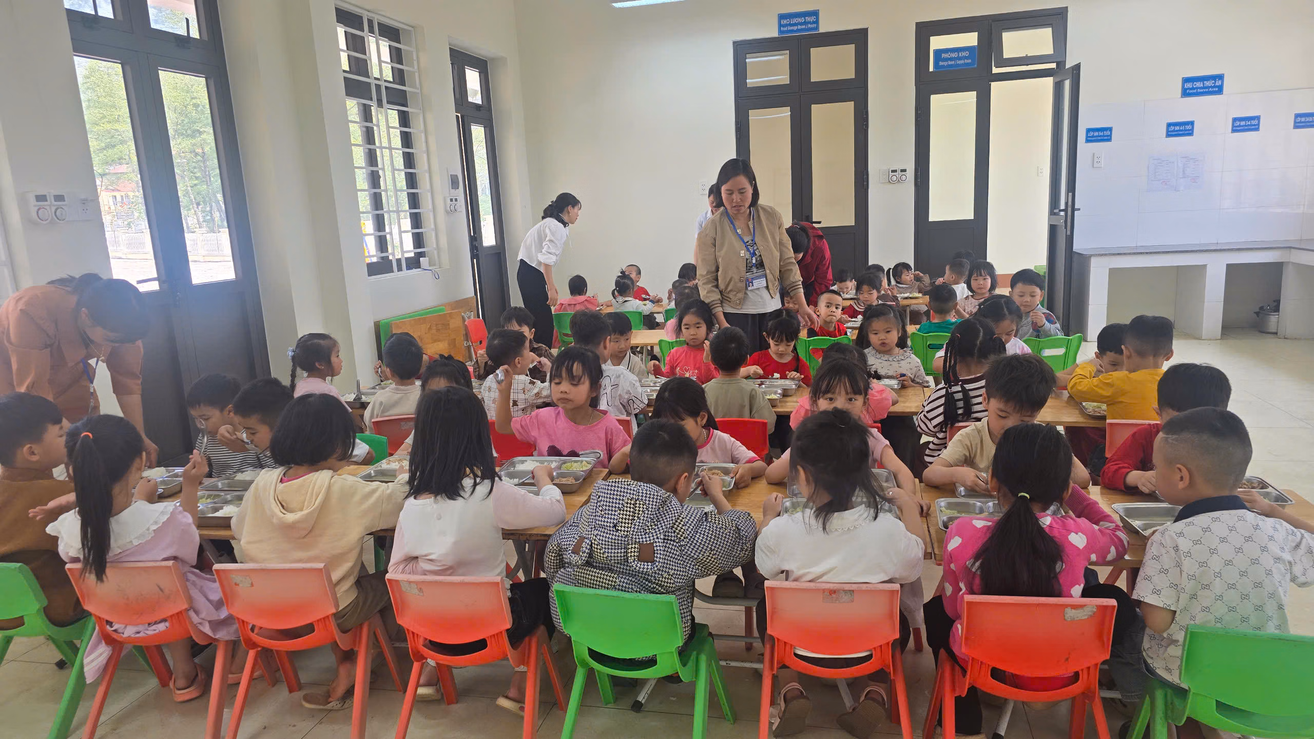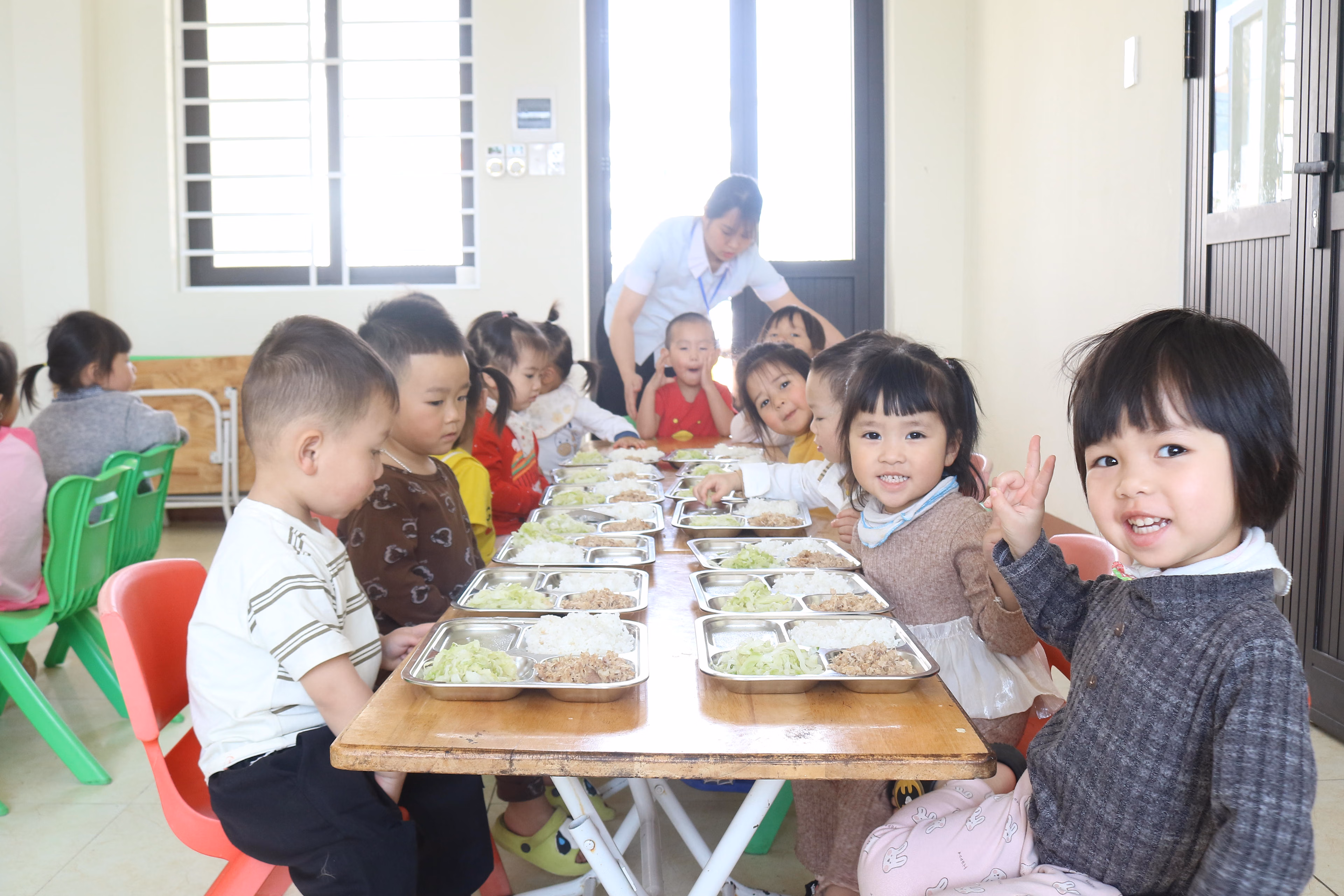 Chia sẻ về công tác tổ chức bữa ăn bán trú, cô Phạm Thị Cảnh - Hiệu trưởng nhà trường cho biết, đơn vị luôn đặt chất lượng bữa ăn và an toàn thực phẩm lên hàng đầu. Từ khâu lựa chọn nguyên liệu, chế biến đến tổ chức cho trẻ ăn đều được kiểm soát chặt chẽ. Việc đơn vị cung cấp thực phẩm hỗ trợ thêm kinh phí cũng tạo điều kiện để nhà trường nâng cao chất lượng khẩu phần, giúp trẻ ăn ngon, đủ chất và bảo đảm an toàn.