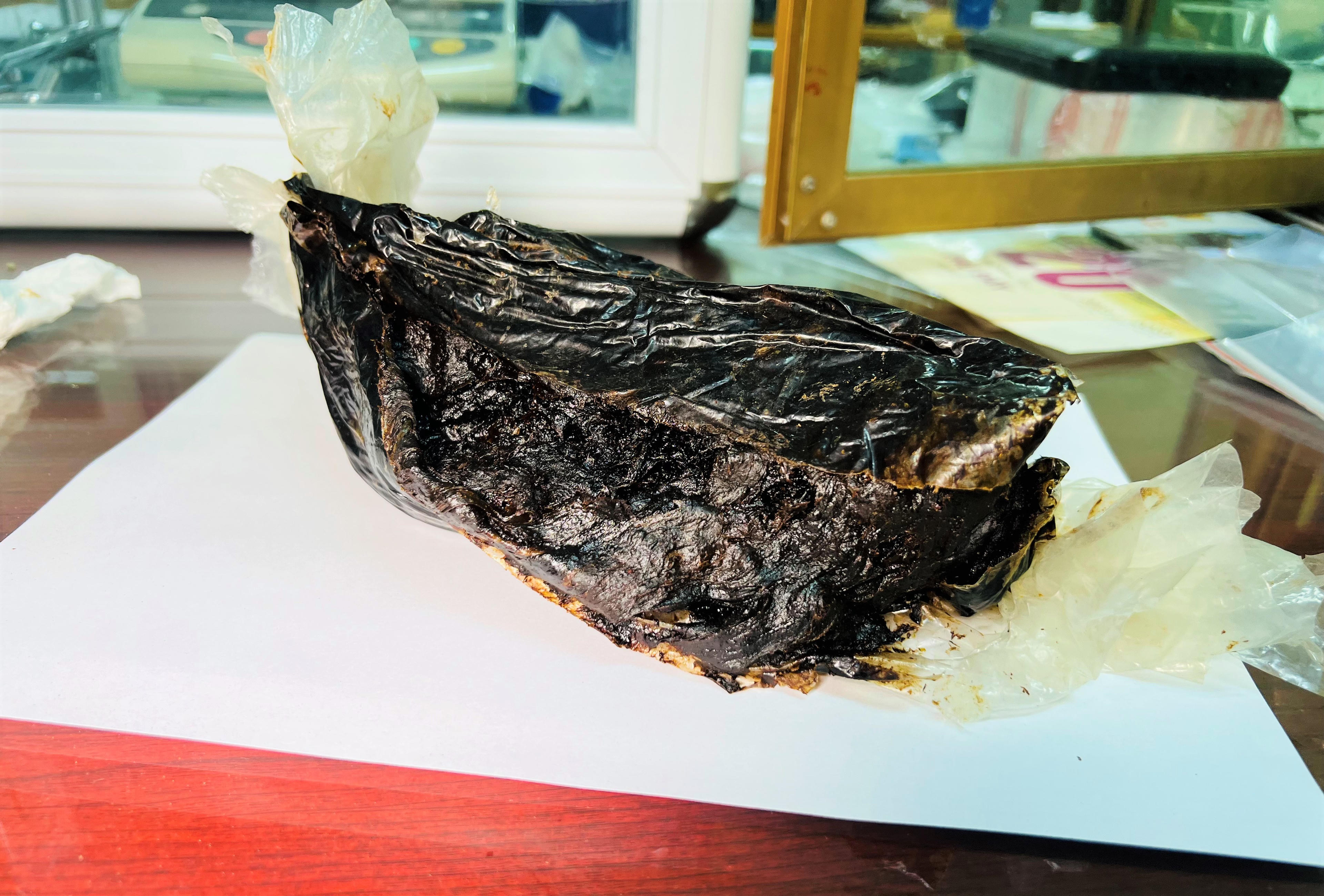 Tang vật thu giữ tại hiện trường là 1 túi ni lon màu xanh, bên trong có 4 gói được quấn bằng nilon và băng dính, trong cùng có chứa chất nhựa dẻo màu nâu nghi là ma túy với tổng trọng lượng là 3.347g (Dì khai nhận số chất nhựa dẻo màu nâu trên là là thuốc phiện).