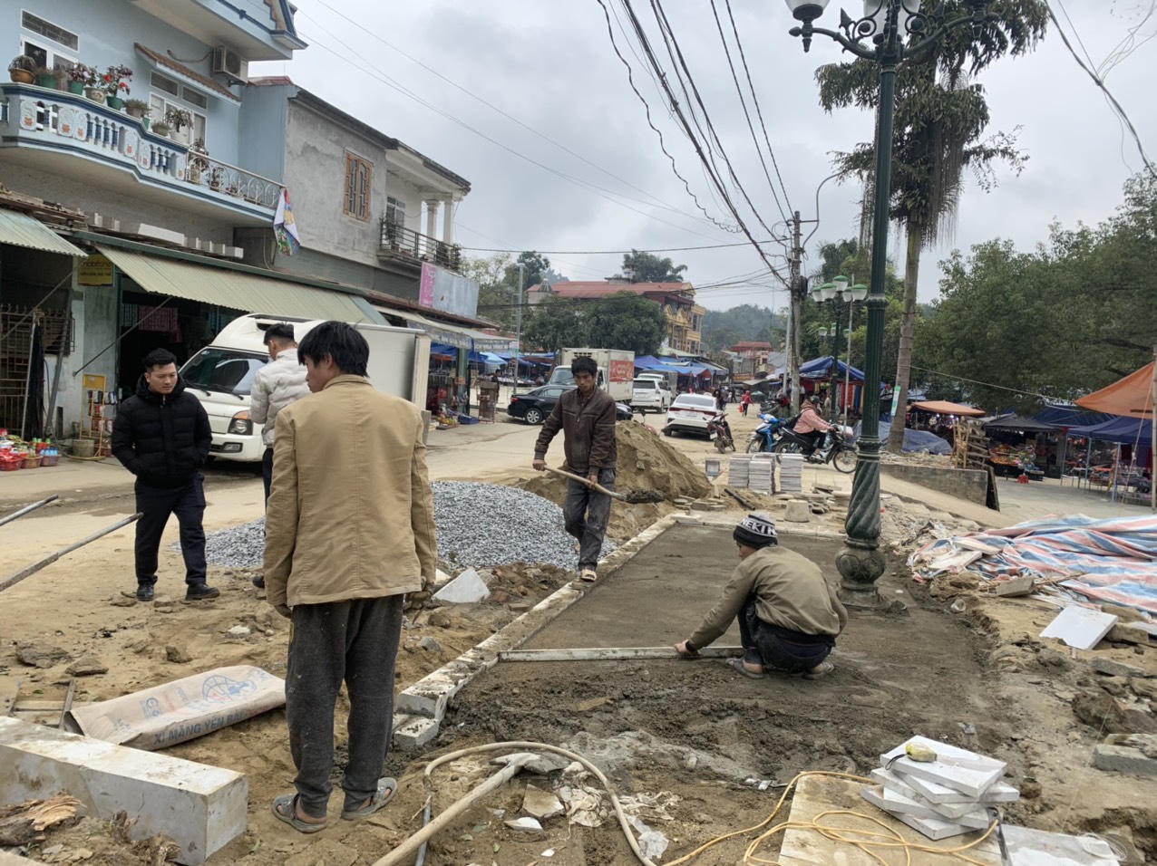 Tại khu chợ chính đã được xây dựng cải tạo xong các hạng mục đủ điều kiện bà con tiểu thương đã đang buôn bán nhộn nhịp; khu chợ hoa quả, bán hàng tươi sống sân nền đã được lát đá xong, đã xây xong nhà vệ sinh đủ điệu kiện phục vụ tiểu thương đang buôn bán; khu nhà thắng cố 2 tầng đã hoàn thiện khoảng 90% công việc, hiện nhà thầu đang chờ cơ quan PCCC kiểm tra nghiệm thu hệ thống ống nước để có thể lát được nền tầng 1 và phần hành lang; khu nhà vệ sinh 2 tầng bổ sung thiết kế đã được xây dựng hoàn thiện đã có thể sử dụng tạm; khu chợ gia súc đang thi công đạt khoảng 80% khối lượng công việc.