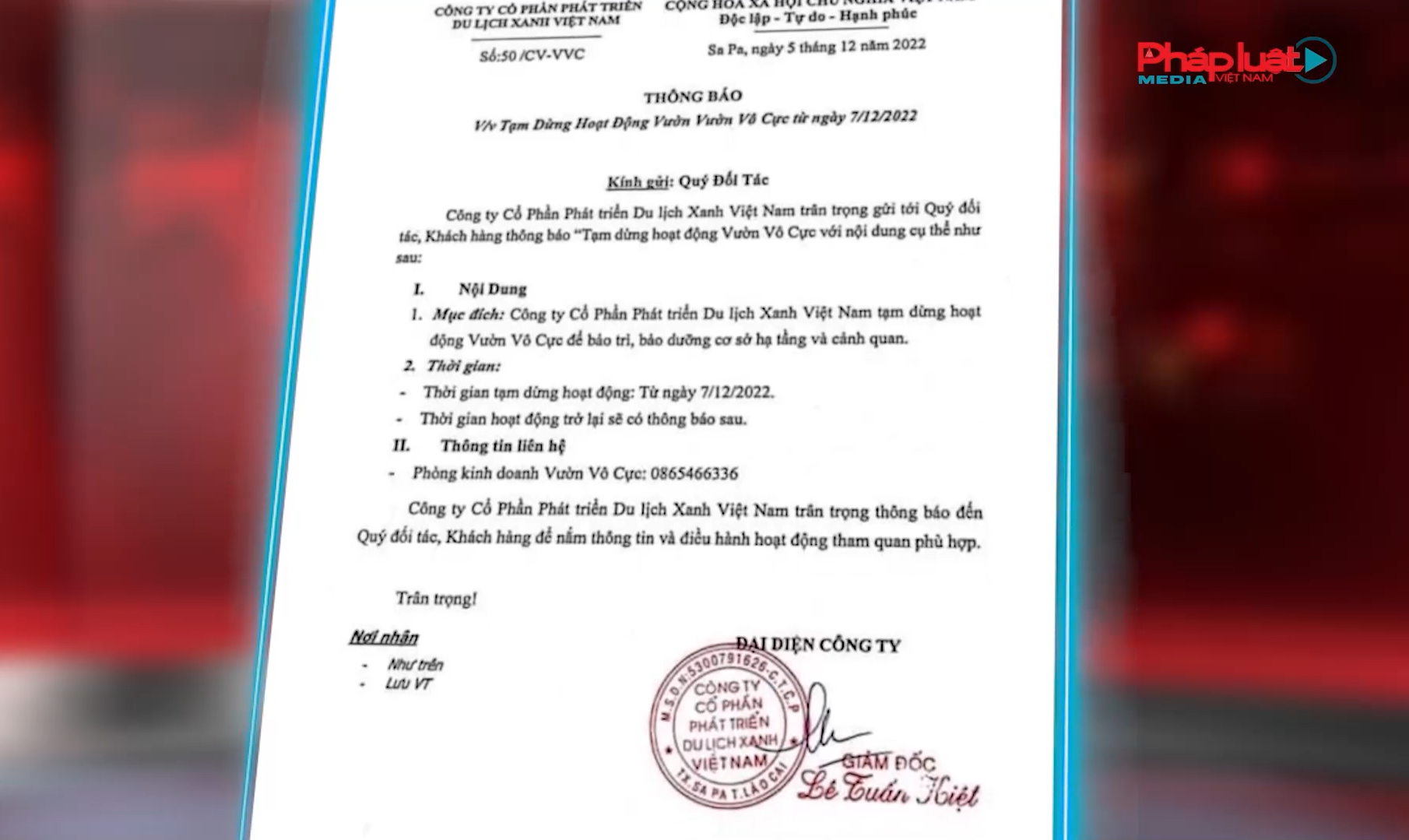 Trước thực trạng sai phạm của “Vườn Vô Cực” tại Khu du lịch Quốc gia vẫn đang hiện hữu và chưa được xử lý theo quy định. Phóng viên Báo Pháp luật Việt Nam đã tiếp tục liên hệ làm việc với UBND tỉnh Lào Cai nhưng chưa nhận được phản hồi.