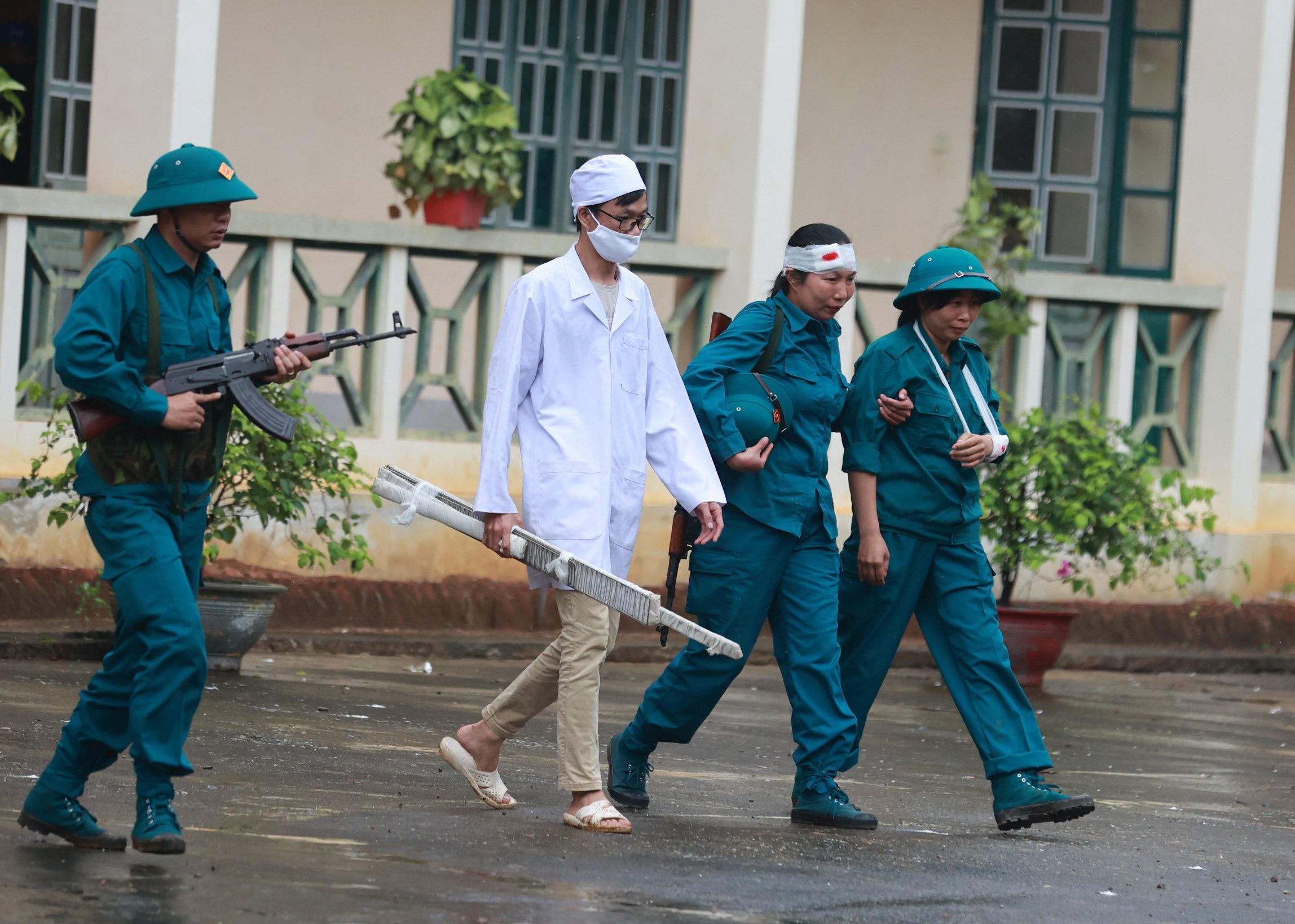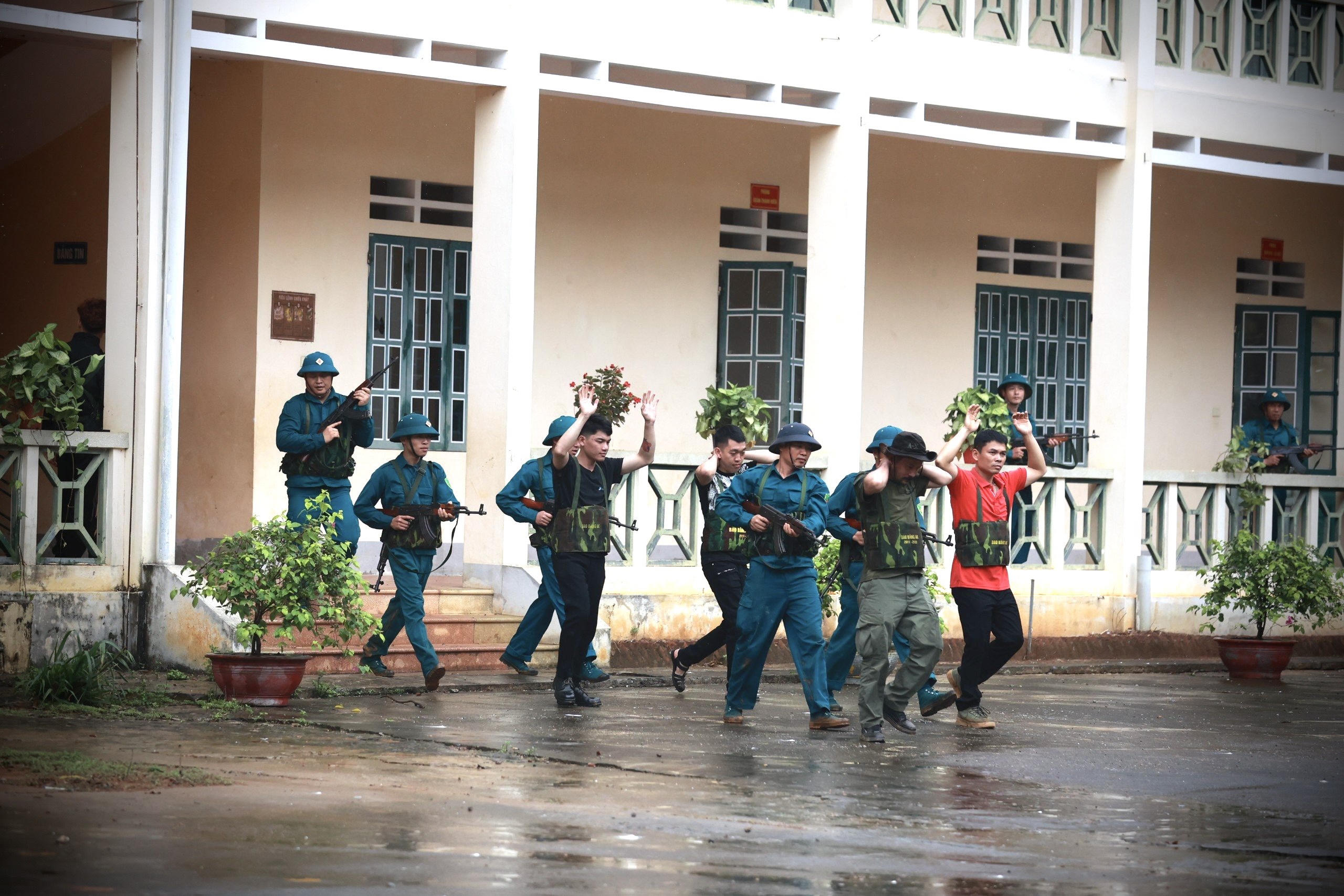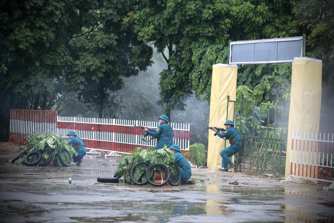 Một số hình ảnh trong tình huống thực binh xử lý tình huống đánh chiếm lại mục tiêu. |
