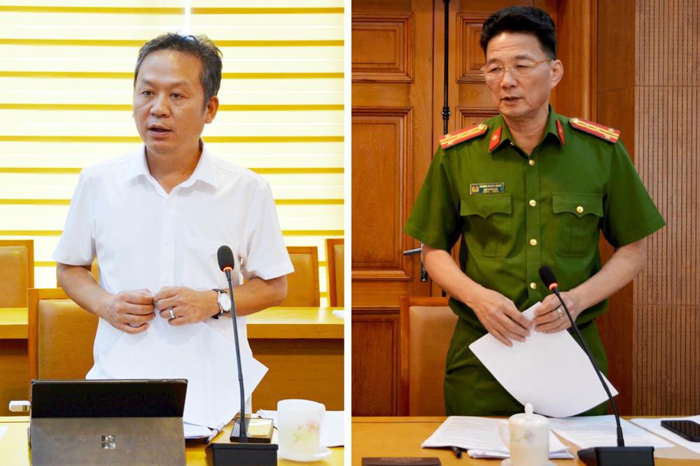 Lãnh đạo Sở Giao thông vận tải và Công an tỉnh phát biểu tại Hội nghị. |