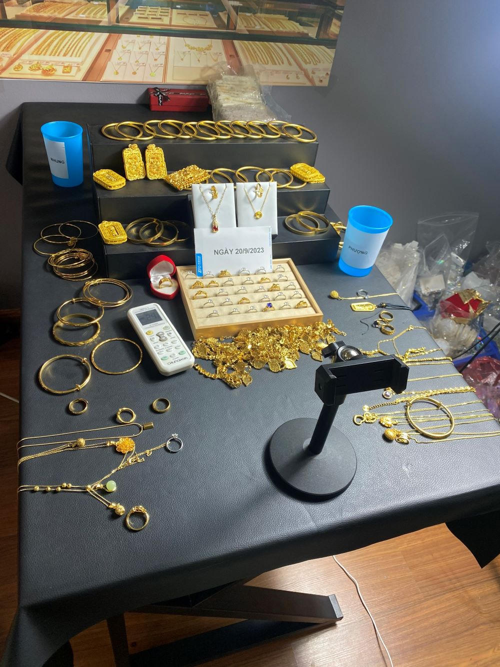 Các sản phẩm trang sức mỹ ký bị lực lượng chức năng thu giữ |