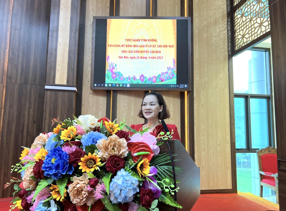 Triển khai Kế hoạch số 22/KH-UBND ngày 17/01/2023 của UBND tỉnh về công tác phổ biến, giáo dục pháp luật; hòa giải ở cơ sở; đánh giá, công nhận cấp xã đạt chuẩn tiếp cận pháp luật trên địa bàn tỉnh năm 2023. Sở Tư pháp tỉnh Lào Cai tổ chức Hội nghị tập huấn, bồi dưỡng kiến thức pháp luật, hướng dẫn nghiệp vụ quản lý nhà nước về hòa giải ở cơ sở tại huyện Văn Bàn,