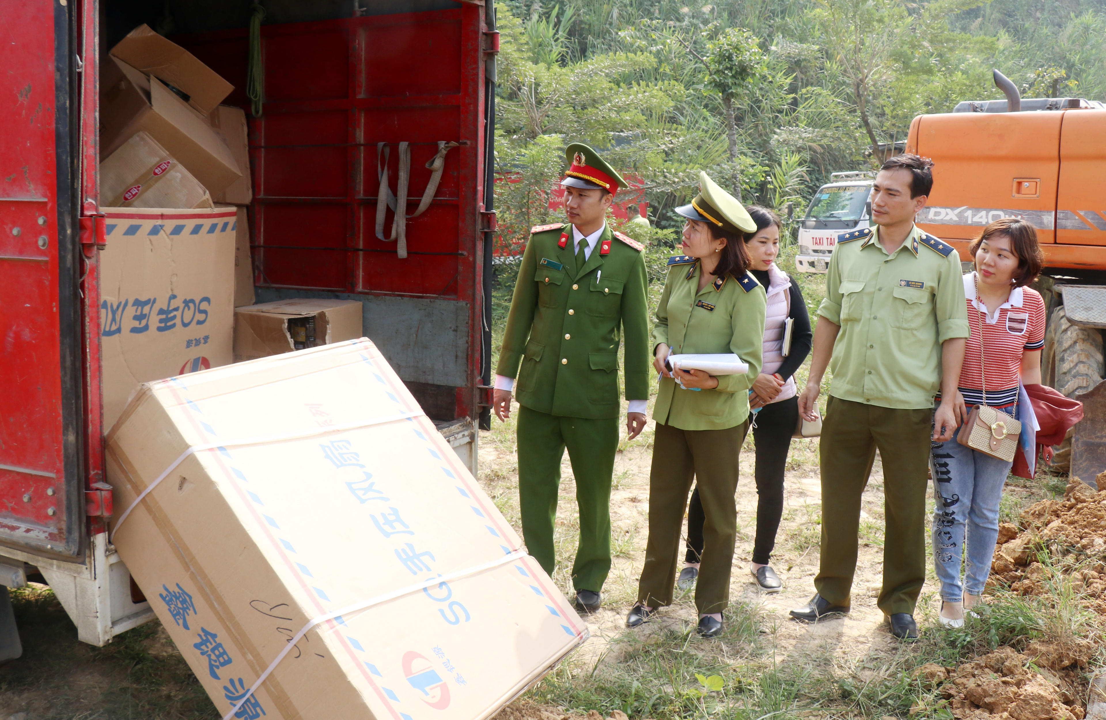 Trước đó vào hồi 13h30 ngày 21/02, Đội Quản lý thị trường số 1 chủ trì phối hợp với Đội Cảnh sát kinh tế Công an thành phố Lào Cai tiến hành khám thùng xe chở hàng trên xe đầu kéo biển kiểm soát 51D - 440.72 tại khu vực lô số 2, đường Trần Quang Khải, khu Công nghiệp Bắc Duyên Hải, phường Duyên Hải, thành phố Lào Cai.