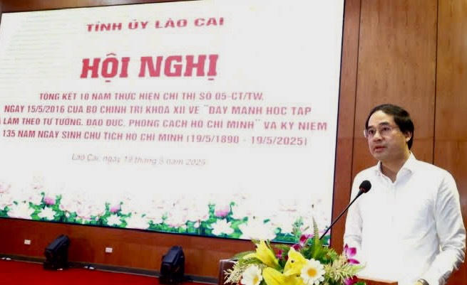 (PLVN) - Ngày 19/5, tại thành phố Lào Cai, Tỉnh ủy Lào Cai tổ chức Hội nghị tổng kết 10 năm thực hiện Chỉ thị số 05-CT/TW ngày 15/5/2016 của Bộ Chính trị về “Đẩy mạnh học tập và làm theo tư tưởng, đạo đức, phong cách Hồ Chí Minh” và kỷ niệm 135 năm Ngày sinh Chủ tịch Hồ Chí Minh (19/5/1890-19/5/2025).