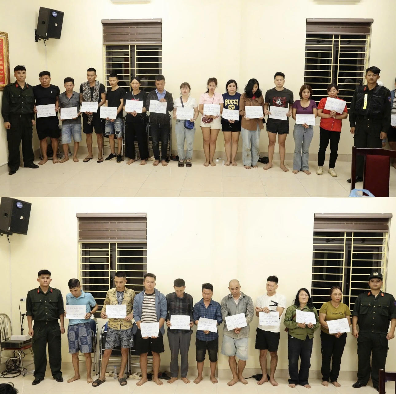 Các đối tượng tham gia đánh bạc và tổ chức đánh bạc bị bắt giữ tại cơ quan công an. |