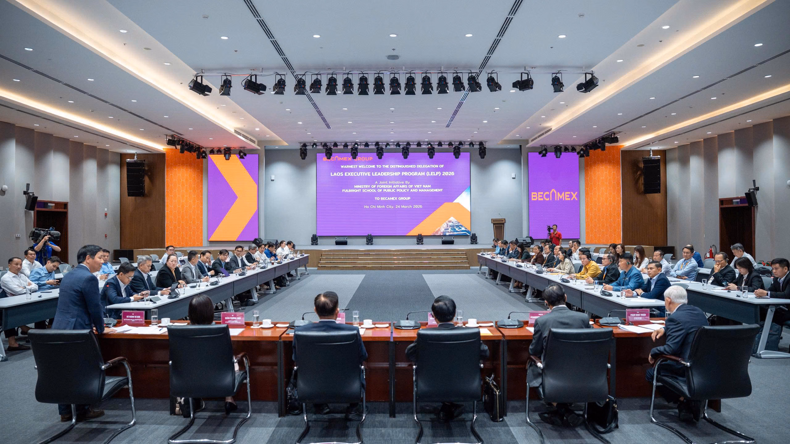 Chiều 24/3/2026, đoàn công tác cấp cao Cộng hoà Dân chủ Nhân dân Lào do ngài Maythong Thammavongsa, Thứ trưởng Bộ Ngoại giao Lào dẫn đầu đã đến thăm, làm việc và khảo sát thực tế tại Tập đoàn Đầu tư và Phát triển công nghiệp Becamex (Tập đoàn Becamex), trong khuôn khổ LELP 2026.