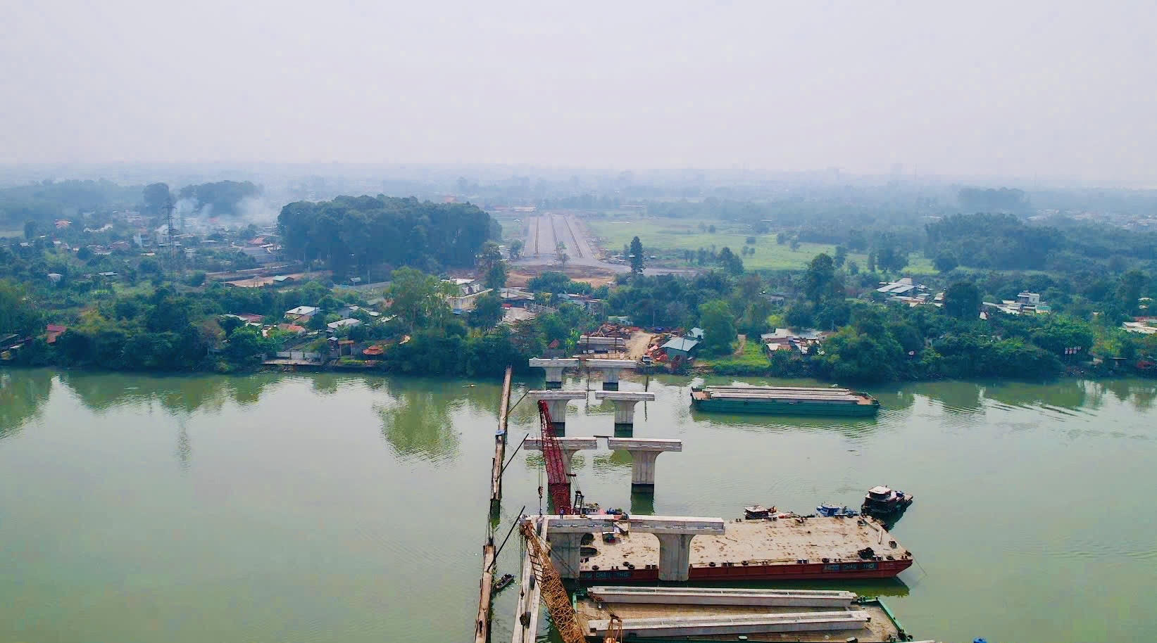 Lao nhịp dầm đầu tiên cầu Thống Nhất nối đôi bờ sông Đồng Nai
