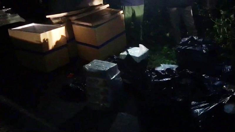 Tiến hành kiểm tra, Tổ công tác phát hiện trên xe ô tô đối tượng bỏ lại có chở nhiều thùng xốp, bên trong cất giấu nhiều bọc nilong màu đen chứa 5.960 bao thuốc lá ngoại nhập lậu nhãn hiệu Hero và Jet.